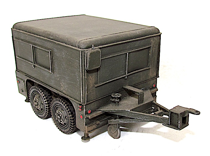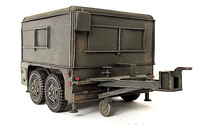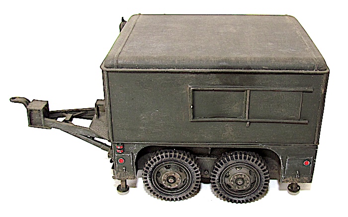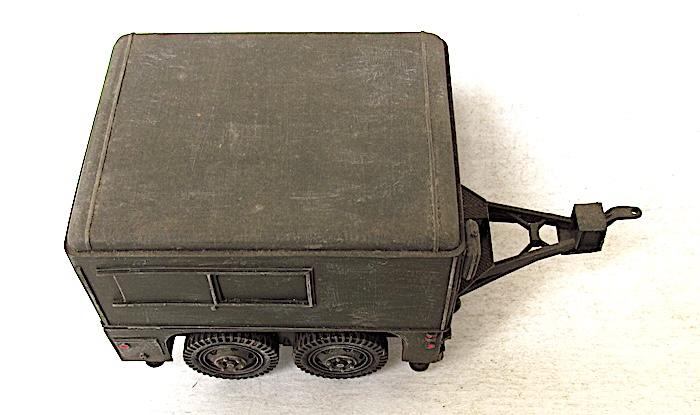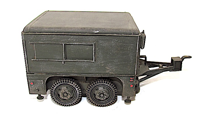 Cette remorque est la plus astucieuse et la plus intelligente produite aux États-Unis : la 2 Ton, Four Wheels, Tandem Tilting de Fruehauf : basse, capable de rouler sur route à bonne allure aussi bien qu’en mauvais terrain, stable, grâce à ses quatre roues en tandem, à son point d’attache bas et à sa flèche abaissée, reposant à l’arrêt sur quatre vérins de stabilisation, dotée de petites rampes arrière ou d’une ridelle basse lui permettant de charger aisément le matériel, d’autant qu’elle pouvait s’incliner sue ses essieux vers l’arrière. Elle fut largement utilisée à toutes sortes d’emploi :
