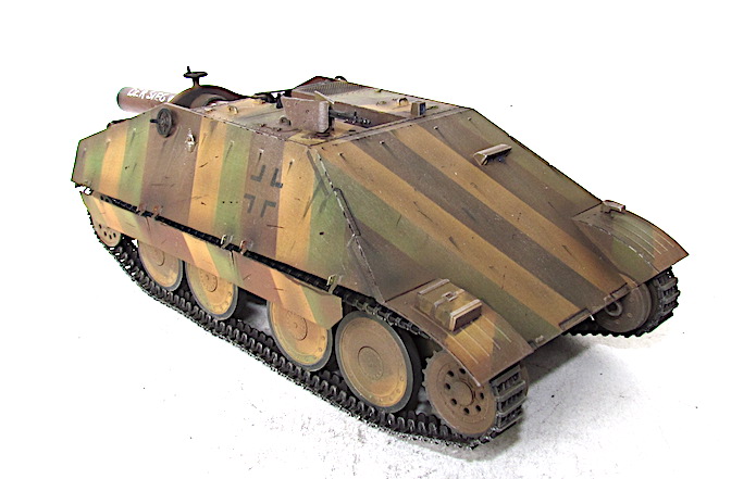 A la fin du conflit, les ingénieurs allemands cherchent à utiliser au maximum le potentiel du châssis tchèque 38 (t). Le châssis de l’ancien char 38 (t) subit une cure de jouvence au niveau du train de roulement et de la motorisation. Elargi et/ou allongé , il offre de nouvelles perspectives afin d’y installer un armement antichar ou antipersonnel de plus en plus lourd et de plus en plus performant.