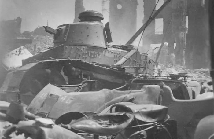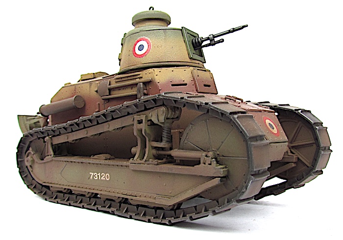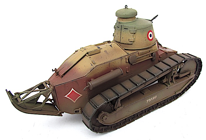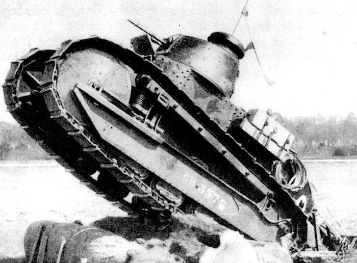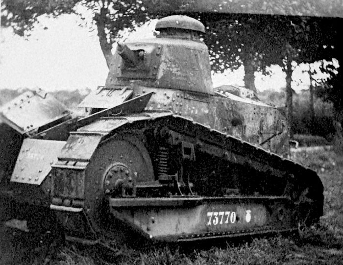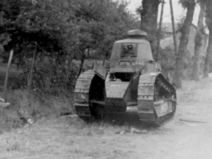 En 1940, face à la poussée allemande, de nombreux FT sont réactivés, parfois désarmés, équipés à la hâte d’un fusil-mitrailleur 24/29 derrière un simple blindage percé. Ces chars épuisés sont déployés en soutien ou intégrés à des bouchons antichars. Faiblement blindés, lents et sous-armés, ils ne font pas le poids face aux Panzer modernes.
