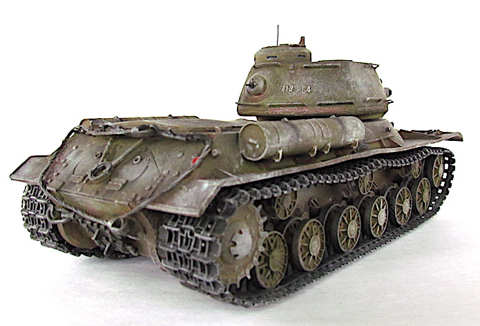 Après la bataille de Kursk, les Soviétiques accélèrent les travaux dirigés par le général Kotin pour developper un nouveau char de combat lourd. Ils prennent en compte l’expérience passée des pachydermies KV et conçoivent un nouveau modèle en partan de sa coquet de ses éléments mécaniques. La suspension est améliorée et le moteur renforcé. Au début de l’automne 1943, les trois premiers prototypes sont prêts et, après leur évaluation au sein de l’entreprise par une commission spéciale du comité d’ Etat de la Défense (GKO), le projet est accepté. La fabrication en série commence alors en octobre 1943.