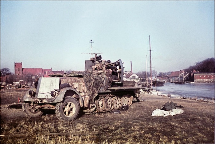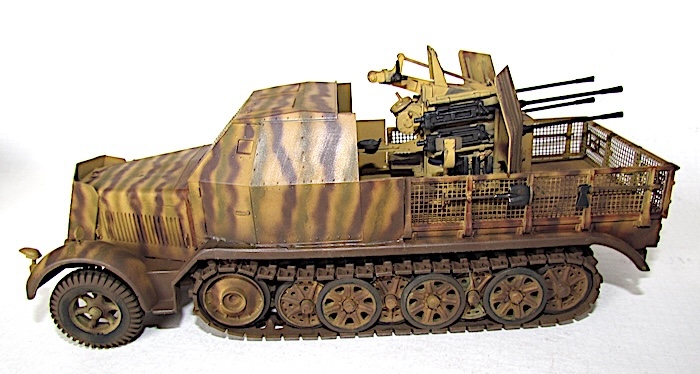 La protection des convois contre l’aviation ennemie a, dès le début de la guerre, posé des problèmes à l’armée allemande. La Blitzkrieg étant fondée sur la mobilité et la rapidité, les canons de Flak statiques ne pouvaient pas être déplacés et installés assez vite pour couvrir les pointes blindées avancées. Les quelques improvisations de 1939-1940 n’apportèrent pas satisfaction. Le canon de 2 cm FlaK 30, monté sur le semi-chenillé SdKfz 10 était certes mobile, mais trop peu puissant et trop lourd pour ce châssis. Bien qu’un peu présent, l’aviation soviétique menaça cependant la progression de l’opération Barbarossa et il fut donc décidé de produire un nouveau véhicule plus fiable, capable de porter une arme plus efficace. Le SdKfz 7 de 8 tonnes, qui servait jusqu’alors principalement de tracteur d’artillerie, fut alors retenu car l’arrière de ce véhicule pouvait être facilement aménagé en plate-forme de tir. On conserva donc le poste de conduite à trois places et un plateau métallique entouré de volets grillagés abattables remplaça les sièges arrière.