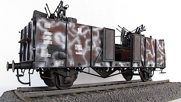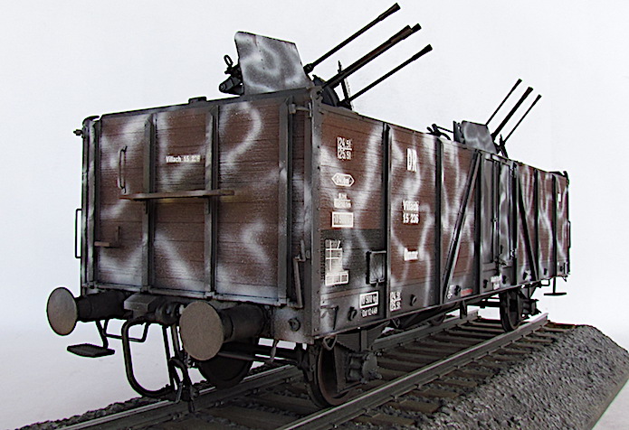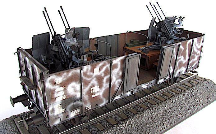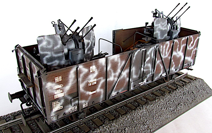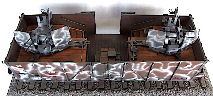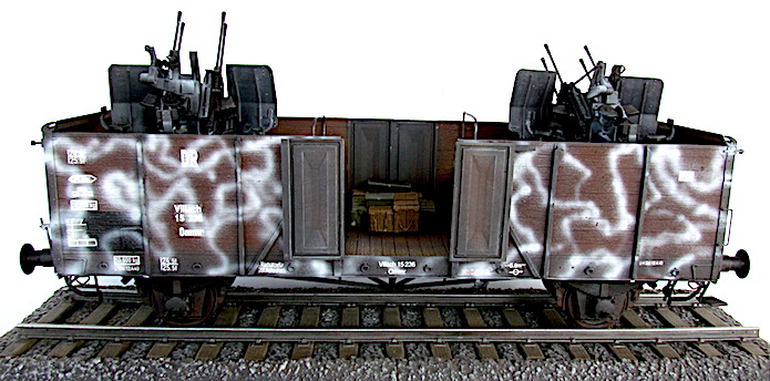 Wagon allemand Gondola Typ Ommr avec deux 20mm Flakvierling 38