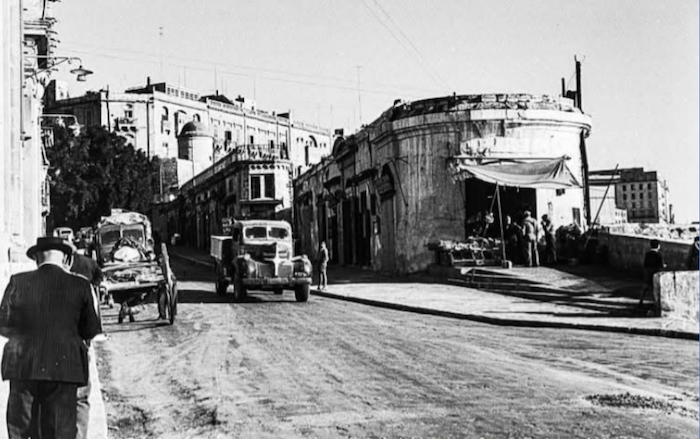 Liesse Hill photographiée après-guerre. La guerre est terminée et la population locale reprend une vie normale loin des bombardements qui ont frappé durement l’ile. 75% des habitations de La Vallette furent endommagées ou détruites pendant la Seconde Guerre mondiale.
