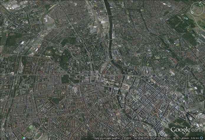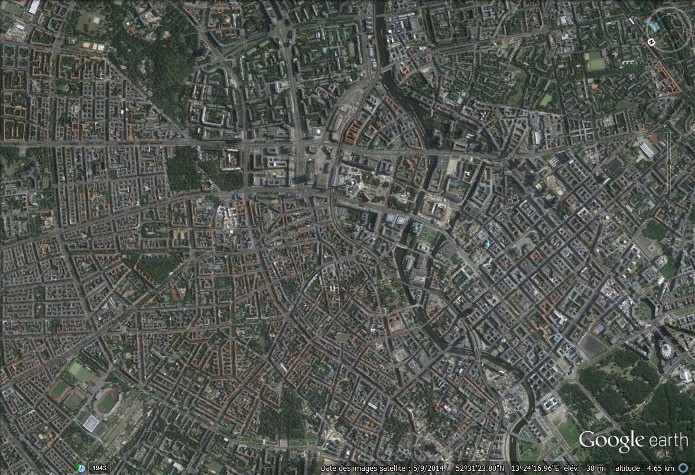Documents : Une série de photographies aériennes verticales prise au-dessus de Berlin Mehringplatz.