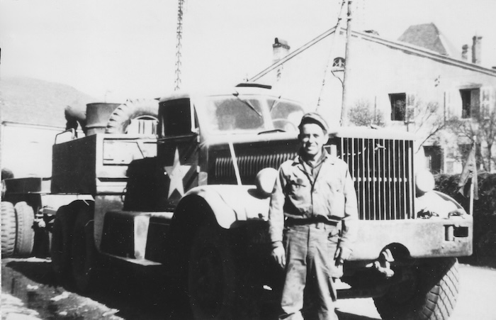 Octobre 1944 . Le village de Girecourt sur Durbion se trouve dans le secteur d’opération de la 45th US Infantry Division. Cette unité a débarqué en Provence en août 1944, remonté le couloir rhodanien et combattu en Lorraine et en Alsace avant d’entrer en Allemagne. En automne, lors des combats en Lorraine, elle libère la ville d’Épinal. Girecourt sur Durbion se situe à une dizaine de kilomètre de la citée spinalienne. Cette photographie a été prise dans le centre du village non loin du château. Elle nous montre un ensemble porte-char M25 Dragon-wagon composé d’un tracteur Diamond avec sa remorque M9. Aucun marquage tactique n’est visible sur la photographie. Le porte-char pourrait avoir été mis à disposition de la 700th Ordnance Light Maintenance Company, unité logistique appartenant à la 45th US Infantry Division.