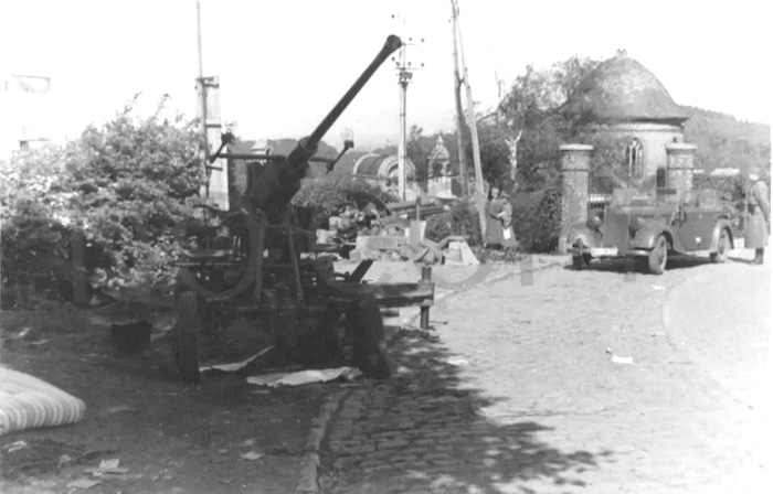 Canon antiaérien de 40mm "Bofor" abandonné devant l'entrée du cimetière.