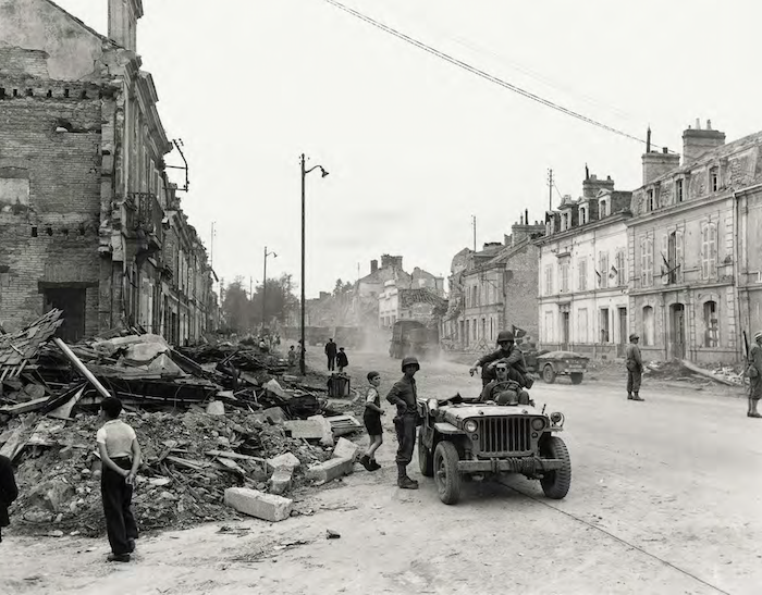 Août 1944. Certains quartiers d’Alençon furent sévèrement touchés par les bombardements comme en témoignent les maisons en ruines rue de Bretagne.