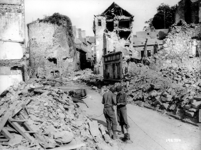 En Août 1944, de nombreux panneaux indicateurs seront installés par les troupes américaines au pied de la Tour de la Porte d’Alençon pour diriger les convois vers le front.