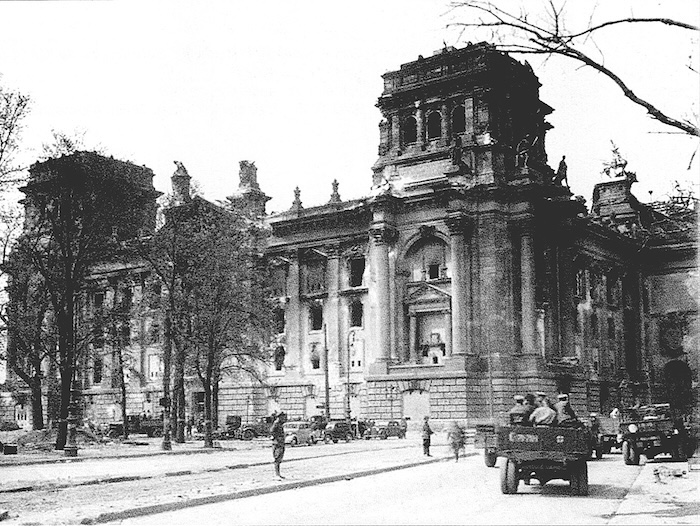 Après la prise de Berlin au terme de la bataille finale d’avril–mai 1945, le Reichstag devient immédiatement un symbole tangible de la victoire sur le IIIe Reich. Avec la capitulation officielle lors de l’Acte de capitulation allemande, le bâtiment — déjà ravagé par les combats — change de fonction : de cible militaire, il devient un lieu de pèlerinage.