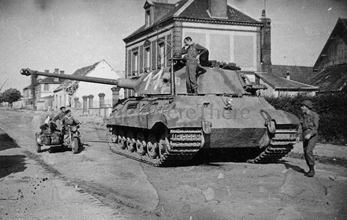 À la suite de l’opération « Margarethe » (mars 1944), cinq Tiger II — châssis Henschel et tourelle Porsche — sont affectés à la Panzer Lehr Division. Leur fiabilité mécanique, encore incertaine, conduit le général Bayerlein à les écarter rapidement au profit de StuG III plus éprouvés. Les Tiger II sont alors reversés à une compagnie de réparation, stationnée à Châteaudun, dans l’attente d’un transfert vers l’Allemagne qui ne pourra jamais être réalisé.