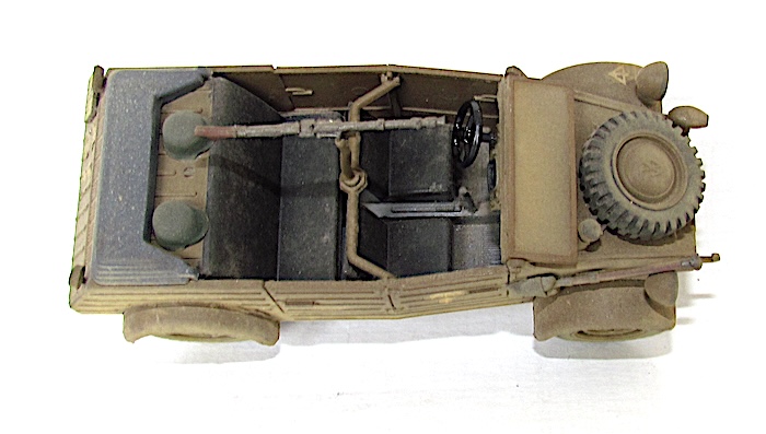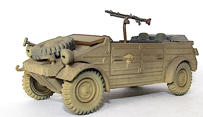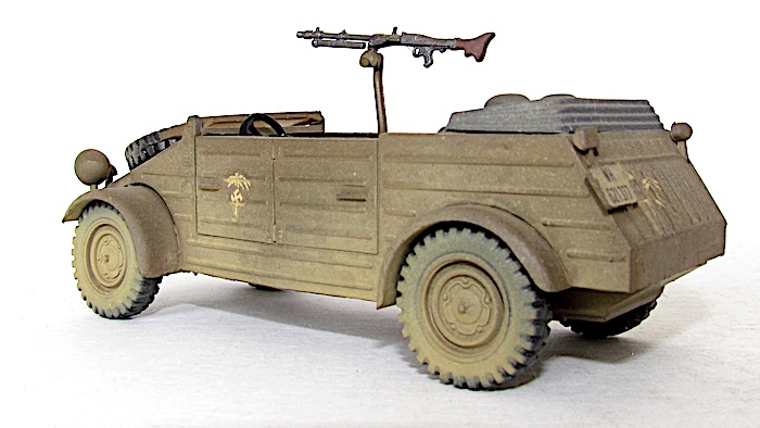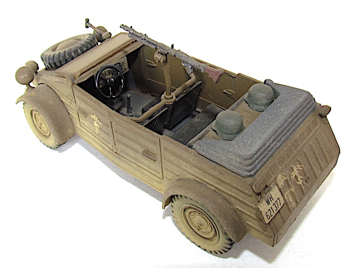 En 1933, Hitler demanda à deux concepteurs d’automobiles — le Dr Porsche (Auto-Union) et Werlin (Mercedes-Benz) — de mettre au point une « voiture du peuple » (Volkswagen). Elle prit forme dès 1934 sur la table à dessin du Dr Porsche.Les premiers plans d’une version tout-terrain, désignée Volkswagen Typ 62, furent élaborés en 1936. Lorsque la décision fut prise de faire de la Volkswagen le seul nouveau véhicule transporteur de personnel de la Wehrmacht, destiné à devenir la voiture standard de toutes les armes, quelques modifications de conception furent décidées. Le nouveau véhicule reçut la désignation Typ 82.En 1938, les travaux pour bâtir les usines Volkswagen de Wolfsburg furent entrepris, et la production commença en mars 1940.Les autorités militaires allemandes adoptèrent ce véhicule pour sa légèreté et sa facilité de fabrication. Conçue avec des moyens peu onéreux, la Kübelwagen ne comportait que des éléments simples. Sa configuration était très proche de celle de la Jeep. Grâce à sa suspension et à son différentiel autobloquant, elle offrait d’excellentes performances tout-terrain.Les principales difficultés techniques une fois réglées, la Volkswagen Typ 1, avec son moteur de 998 cm³, quatre cylindres à refroidissement par air, devint rapidement un véhicule des plus fiables.Avec ses excellentes qualités automotrices et son entretien facile, la Kübelwagen répondit pleinement aux exigences de l’armée, aussi bien dans les campagnes du désert que sur le front soviétique.La version militaire possédait une carrosserie en plaques de métal, avec quatre portières. Une capote de toile repliable et des protections latérales transparentes mettaient les passagers à l’abri des intempéries. Les tôles étaient fixées sur une armature tubulaire constituant la base du véhicule.