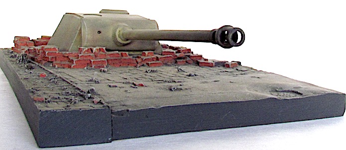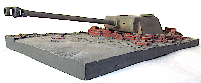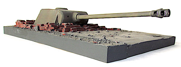 Afin de renforcer leurs lignes de défense, notamment côtières, les Allemands installent des tourelles de char sur des abris bétonnés. La plupart du temps, il s’agit de tourelles provenant de blindés obsolètes ou d’engins de prise. Lorsque, durant l’année 1943, la Wehrmacht commence à adopter une stratégie défensive, cette pratique atteint ses limites, car les chars alignés par l’adversaire surclassent aisément le blindage et d’armement de ces tourelles déclassées. Dans l’urgence l’organisation Todt (OT), dont une des tâches est de construire des fortifications jette son dévolu sur des tourelles de Panther posées sur une superstructures adaptée. Cette solution est jugée plus rentable et rapide que la création d’un bunker traditionnel nécessitant plus de béton, et dont la construction est soumise aux aléas de la météo. Un premier modèle est alors dessiné : l’OT Stahlunsterstand mit Aufgesteztem Pantherturm I. La tourelle est installée sur une caisse métallique mesurant 3 mètres de haut sur une base carrée de 3 mètres de côté. Ses parois font 100mm d’épaisseur sur le dessus et 70 à 8à mm pour les côtés. Ce caisson comprend un premier espace profond de 1 mètre destiné à accueillir le panier de tourelle et les munitions (175 obus de 7,5cm et 4500 projectiles de 7,92 mm). Etanche aux gaz de combat, le deuxième compartiment est l’espace de vie pour les servants avec des couchettes, un poêle de type WT 80 avec ou sans plaque de cuisson, un sas de sortie, un système de ventilation … L’ensemble pèse près de 42 tonnes, ce qui n’est pas sans poser des problèmes de transport, notamment dans les zones dépourvues de réseaux ferrés. Le caisson destiné aux hommes est enterré, ne laissant dépasser que le premier étage, qui est ensuite renforcé par un mur de parpaings inclinés. Toutefois, les secousses consécutives aux tirs ont tendance à desceller ces derniers, imposant leur remplacement, un an plus tard, par un coulage en béton plus résistant désigné OT Stahlunterstand mit Betonummantelung für Pantherturm II . En mai 1944, Hitler ordonne que les tourelles de Panther soient désormais montées sur une superstructure en béton de manière à économiser de l’acier et faciliter leur installation. Désigné Stahlbeton-unterstand Regelbau 687 ou encore Typ 687 Stahlbeton-unterstand mit aufgesteztem Pantherturm , elles nécessitent toutefois 230m3 de béton, et leur mise en place prend du temps. De ce fait, fin 1944, le béton est remplacé par du bois. Produit à 123 exemplaires (de130 à 143 pour les modèles métalliques ou bétonnés), le Schnelleinbau Pantherturmauf Holzstand ne comprend qu’un seul compartiment, dont les 2,5 m de hauteur sous plafond sont largement empiétés par le panier de tourelle. Dans un premier temps, cette dernière est un modèle d’Ausf. A directement prélevée sur les chaînes de montage. Dès l’été 1944, sont récupérées des tourelles d’Ausf . D lourdement endommagées au front dont le châssis est jugé irrécupérable. Par la suite, une tourelle spécifique est assemblée. Elle se distingue de celle de base par la suppression du tourelleau du chad de char, remplacé par une trappe pourvue d’un unique épiscope-, par un blindage de toit porté à 65 mm afin de résister à des coups directs d’artillerie et d’un matelet réduit, Enfin, une Nahverteidgungswaffe , ou arme de défense rapprochée, de 90 mm est installée à l’arrière droit afin de lutter contre l’infanterie adverse.