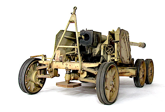 A la demande de l’armée, Krupp et Rheinmetall-Borsig sont sélectionnés pour concevoir un nouveau canon anti-char . Le développement s'est initialement concentré sur un canon de campagne connu sous le nom de Kanone K 44. Cependant, lorsque des chars soviétiques plus lourds tels que l'IS 2 ont commencé à apparaître, les exigences de conception ont été modifiées pour inclure un rôle anti-blindage. Chaque firme propose son propre prototype qui s’il conserve le concept du K44, diffèrent dans la silhouette, surtout au niveau du train de roulement et du bouclier. Rheinmetall-Borsig présente un tube monté sur un affût cruciforme dont le train de roulement à six roues. Le tube a une rotation de 360° et une élévation de -5° à +45°. Cette élévation est permise par la position reculés des tourillons couplés à des équilibreurs hydropneumatiques. Ils permettent de contrebalancer le poids de la volée du tube. Les manivelles permettant le réglage du tir sont disposées de part et d’autre du tube. Le tireur se positionne à gauche de l’arme. L’arme est équipée d’un frein de recul hydropneumatique dont la particularité est d’être réglable en résistance en fonction de l’élévation choisie. Le tube a une longueur de 762 cm, frein de bouche compris (soit 19 mm de plus que le modèle Krupp) .La culasse est à coin coulissant horizontal. La chambre de combustion est plus volumineuse que celle du modèle développé par Krupp. Le frein de bouche est de type poivrière permettant une bonne évacuation des gaz et limitant l’effet de recul. La chaise caisse de route est positionnée sur l’avant. Des cames rétractables verrouillent les parties supérieures et inférieures de l’arme évitant des rotations intempestives. Le bouclier est composé de plaques angulaires espacées de 15mm et épaisses de 5 mm dont le rôle est de protéger les servants.Le train de roulement est à six roues. Le train avant est composé de quatre roues deux par deux positionnés sur une poutre connectée par un pivot sur un bras oscillant. Lors de la mise en batterie, la pièce est abaissée ay niveau du sol par un système de manivelles. Les deux bogies sont légèrement surélevés et leur masse augmente la protection des servants, Le train avant est désolidarisé et les bras latéraux sont ouverts. Les quatre pieds carrés sont réglés augmentant l’assise de la pièce.