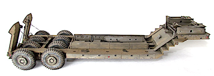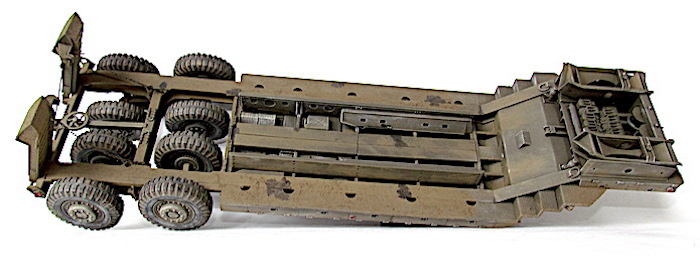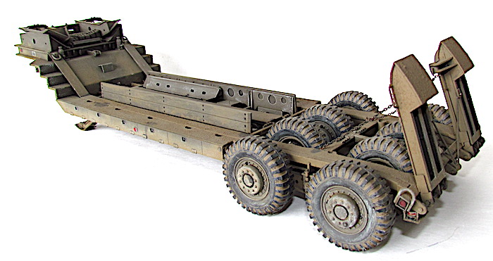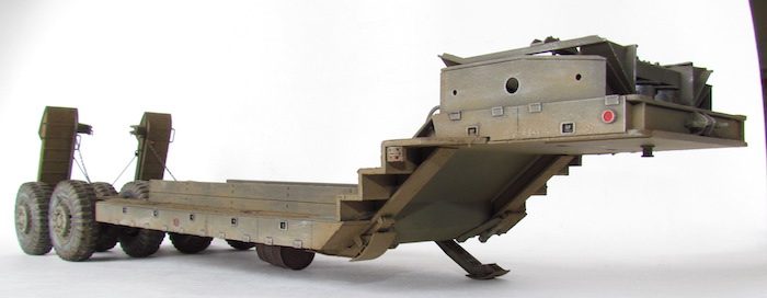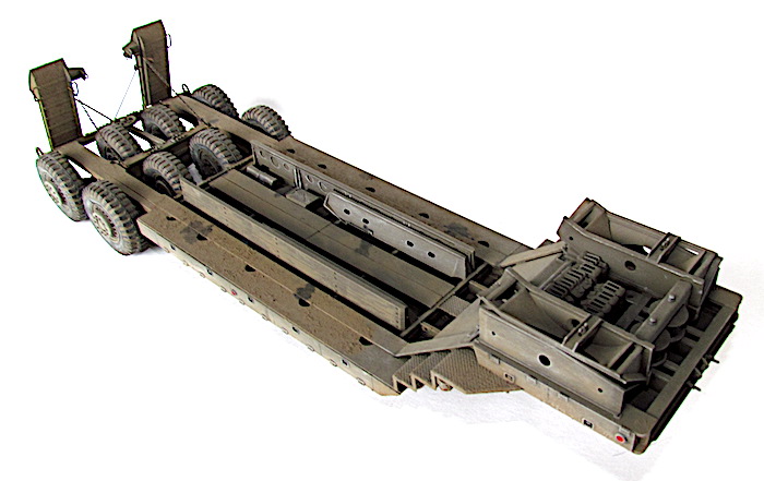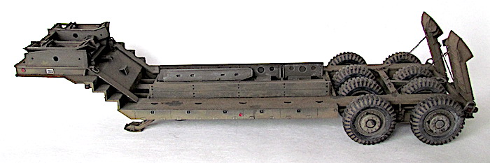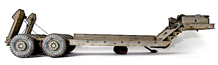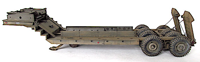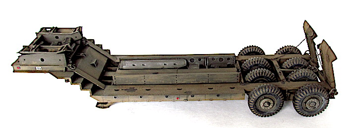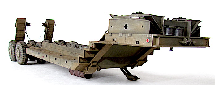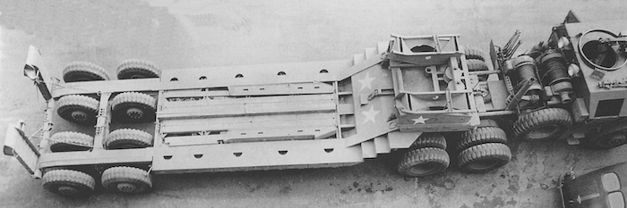 Le camion remorque de 40 tonnes M-25 transporteur de chars est destiné à la récupération des matériels endommagés et à leur transport à l’emplacement où les réparations nécessaires peuvent être effectuées. Le véhicule M-25 consiste en un camion tracteur (M-26) et une semi-remorque (M-15), cette dernière étant accouplée au tracteur au moyen d’une plaque d’appui placée sur le tracteur et qui verrouille automatiquement la semi-remorque au tracteur. Les freins pneumatiques des roues de la semi-remorque et le dispositif d’éclairage de la remorque sont reliés respectivement aux dispositifs de freinage et d’éclairage du tracteur par un raccord flexible d’air et un câble de connexion (portés par la remorque). En fait, lorsque le porte-char M-25, composé du tracteur Pacific M26 et de la semi-remorque M-15, a été livré aux unités, l'écart nécessaires entre les pneumatiques pour le passage des chenilles a été calibré par rapport à la largeur des chenilles des chars légers M3/M5 et des chars M3/M4 ; ces deux types de chars étant les seuls d'actualité au moment de la conception de la M-15.L'arrivée de chars plus lourds, et aux chenilles plus larges, a eu pour conséquences de contraindre ces blindés à "rouler" sur les roues, entrainant une usure prématurée des pneus.L'introduction de ces nouveaux matériels, plus lourds et volumineux, a montré les limites de la semi-remorque, dans sa configuration initiale ; les pneumatiques étant systématiquement écrasés et la charge admise dépassée.La M-15 possède également des éléments spécifiques à la récupération des blindés. Ils servent à guider le char lors de son treuillage sur la remorque. Quatre protections pour les pneumatiques intérieurs faisant également office de guides (wheel Skid Guard) sont rangées sur le dessus du col de cygne et deux rails latéraux (Removable Skid) à accrocher sur les rampes de chargement sont positionnés dans le bac central. C’est aussi )à cet endroit que l’on trouve les éléments de la grue , constituée d’une potence et d’un rail, où coulisse un treuil manuel. Utilisée pour la manutention de pièces lourdes ( et de la roue de secours), elle est positionnable à quatre endroits de la remorque, deux sur le devant et deux près des roues arrière. Mais avec l’introduction de chars de plus en plus lourd s et volumineux, la M-15 trouve rapidement ses limites. Les nouveaux engins ne peuvent plus monter sur la remorque sans écraser les pneumatiques, et leur poids est à la limite de la charge admise. Dès avril 1944, l’Ordnance Department préconise la transformation d’une partie des M-15. Le col de cygne est renforcé par la pose de fortes tôles sur les escaliers latéraux, les passages à niveau des trains de pneus reçoivent d’importants blocs biseautés pour que les chenilles passent au-dessus des roues et les chemins de roulement sont aussi renforcé d’épaisses tôles. Ces modifications n’entraînent pas de changement dans la désignation militaire.