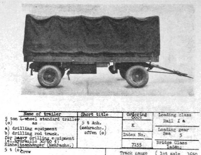 Le Einheitsanhänger 5 t Baumuster E 5 - remorque standard 5 tonnes, modèle E 5 - avait une charge utile de 5 000 kg pour un poids propre de 2 275 kg. La plate-forme mesurait 4,5 mètres de long et 2,1 mètres de large. Les ridelles avaient une hauteur de 60 cm. Des superstructures spéciales pourraient être montées sur la plate-forme.