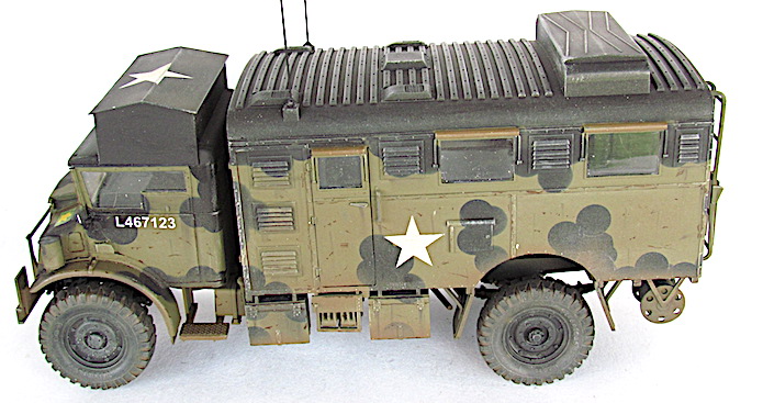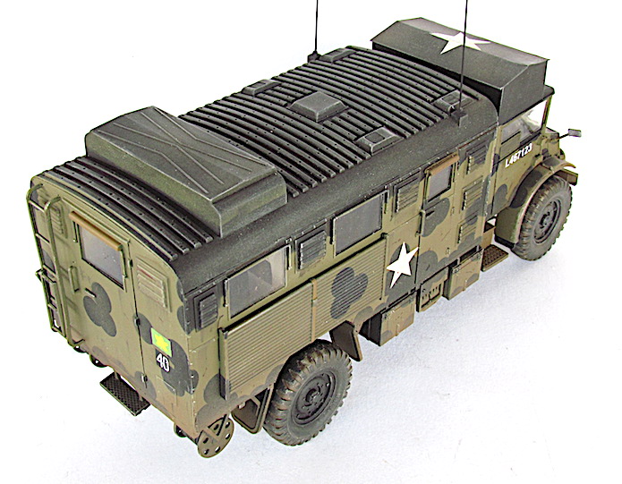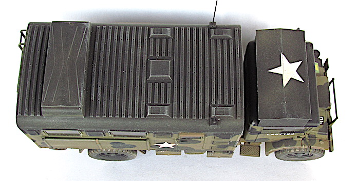 Le shelter , en métal, mesurait environ 3, 90 m. Il abritait les équipements et les postes de travail des opérateurs . Il était équipé de portes latérales et arrière. Différents coffres dont le coffre contenant les batteries techniques étaient situés sous le plancher . Certaines versions étaient équipés d’un cadre radio articulé. Les éléments du mat antenne étaient rangés dans un rack situé sur le coté droit du shelter. Le haut de la cabine du Chevrolet était lui aussi équipé d’un important coffre de rangement.