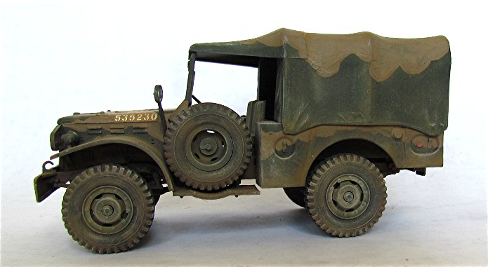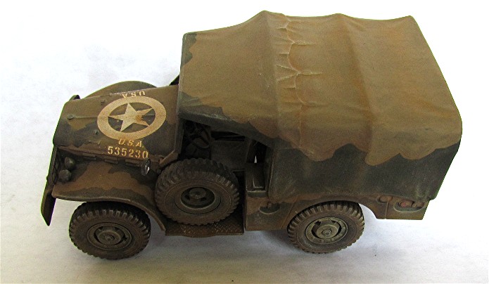 Ce véhicule appartenant probablement à la 45th USID a participé aux opérations du Débarquement de Provence en Août 1944. Cette unité a déjà combattu en Afrique, en Sicile et Italie. Elle continuera à combattre en Alsace et terminera la guerre au cœur du Reich. Le camouflage 3 tons porté par le véhicule a été appliqué lors des campagnes précédentes. Il est composé de taches noires et terre appliquées sur la couleur de base olive drab.