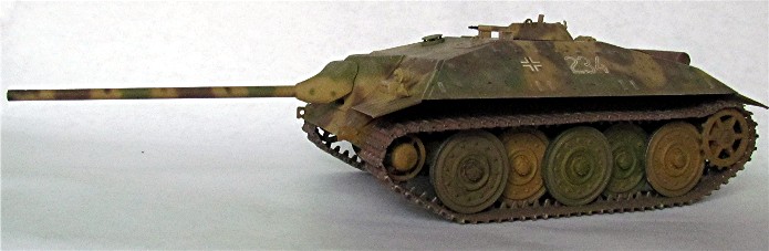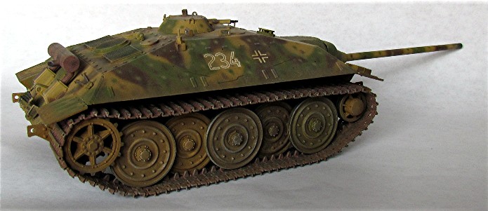 "La série E des chars allemands était destinée à produire des chars plus faciles à construire vers la fin de la guerre. Ce modèle inspiré du Jagdpanzer 38t Hetzer, devait remplacer le Jagdpanzer IV Lang. Le travail sur la série E a commencé en 1943 sous la direction de Waffenprufamt 6 (WaPruAmt 6) dirigé par le Général H.E. Kniepkamp. Ils devaient concevoir respectivement des chars dans les 10, 25, 50 et 75 tonnes tandis que le premier exemplaire E100 fut construit en partie. Le E25 devait être bas, bien blindé et agile, prenant la place du Jagdpanzer IV Lang qui était trop grand et assez compliqué à construire. L'armement devait être le canon 7.5 cm L/70, une arme efficace contre tous les chars alliés du moment. Si le E-25 avait été engagé contre les Shermans et les Cromwells, il aurait été un adversaire extrêmement difficile à détruire. Cependant, ce n'était pas un véhicule imaginaire. Quelques châssis ont été achevés avant le 23 janvier 1945 et étaient à Kattowitz attendant d’être déplacés pour une évaluation (Entwicklungskommission Panzer, Berlin W8, Pariser Hall de Conférence). "