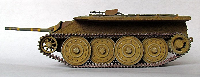 Le programme pour la série Entwicklungsfahrzeug fut conçu par Oberbaurat Kniepkamp en mai 1942 et fut autorisé comme projet en avril 1943 sous contrat pour un plus petit Panzer dénommé E 10. Le E 10 fut développé au début comme un châssis pour tester les nouvelles composantes, spécialement les moteurs, transmissions et suspensions. Plusieurs pièces devaient être utilisé autant par le E 10 que le E 25. Un Plan de la firme Magirus montre le E 10 équipé du canon 7.5cm Pak 39L/48. Le type d'armes à utiliser pour le modèle de série n'était pas encore décidé en janvier 1945 mais devait tenir compte de la disponibilité de l'arme la plus moderne disponible. D'après les interrogatoires après la fin de la guerre de la firme Kniepkamp, les plans du E 10 étaient complétés à l'été 1944 et les contrats donnés à la compagnie Magirus pour trois véhicules d'essais. Les trois coques furent fabriquées en Silésie mais ne furent pas terminées quand les Russes arrivèrent.