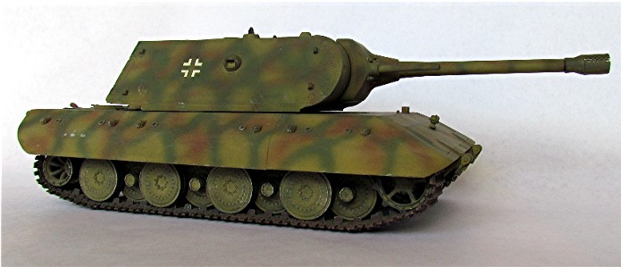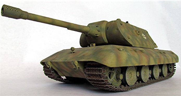 Les séries E-50 et E-75 doivent remplacer théoriquement le Panther et le Tiger. La série des chars dits ‘super lourd’ englobe le E-100 et le Maus. Les caractéristiques principales de ces derniers sont la puissance de leur armement principal et secondaire ainsi que l’épaisseur de leur blindage. Ces 2 chars bénéficient de techniques de pointe et d’innovations technologiques dans le développement et dans la mise au point des boites de vitesse, éléments de transmissions et de suspension ainsi que dans la motorisation. Les Tiger et Panther ne disparaissaient pas pour autant du champ de bataille mais se voient reléguer à des taches de soutien ou de reconnaissance. C’est en 1943, en parallèle du projet Porsche 205 Maus, que le Waffenamt commande à la firme Adlerwerke le E-100. Cette commande faite suite à l’échec de la firme Henschel dans la réalisation du projet VK7001 Tiger Maus qui ne sut présenter qu’un projet d’amélioration du Tiger II. Les premiers travaux commencent le 30 juin 1943 sous la responsabilité du professeur Jenschke. Mais en 1944, la situation militaire se dégrade inexorablement pour le Reich et une décision personnelle d’Hitler met fin au développement des projets de chars " super lourds " en faveur des blindés dont la fiabilité a déjà fait ses preuves sur le champs de bataille. N’étant plus prioritaire, c’est sur une initiative personnelle que la firme Adlerwerke poursuit le programme en affectant trois ouvriers à l’assemblage du prototype dans des locaux dépendant de Henschel, à Paderborn. Le premier châssis est pratiquement terminé à la fin des hostilités, seule la tourelle manque. Les premiers essais sont effectués avec la motorisation du Tigre II, soit le HL230P30 auquel est adjoint une transmission de type Olvar. Le moteur HL234 et la suspension Mekydro sont retenus pour équiper la version finale. La conception du E-100 est conventionnelle, les ingénieurs optimalisent le gain d’espace pour le stockage des munitions dont la taille est plus en plus encombrante sans pour autant affecter les formes extérieures. Ils préconisent alors l’abandon du système de suspension à barres de torsion pour un système à amortisseur situé à l’extérieur de la caisse du type Belleville-Washer. Autre but recherché, la facilité de l’entretien par l’intégration du moteur dans un compartiment arrière de petite taille facilement accessible dont les trappes d’accès et de ventilation sont des copies de celles du Tigre II. Comme le Tigre I et le Tigre II, le E-100 avait un gabarit supérieur à la largeur des plateformes ferroviaires en dotation. Pour le transport, les larges jupes latérales, les chenilles de combat, la poulie de tension et le barbotin étaient démonté et remplacé par un train de roulement de dimension inférieure réduisant ainsi le gabarit du blindé à 3.29 m. La tourelle devait être fabriquée par Krupp (Essen) et devait être semblable à celle du Maus. D’un poids de 50 tonnes, elle est particulièrement étudiée pour absorber le puissant recul du canon de 17cm KWK44. Elle ne fut jamais achevée. En 1945, les Alliés trouvèrent l’unique prototype non achevé à Haustenbeck près de Paderborn. Complété autant que possible, il est emmené en Angleterre à fin d'évaluation. Même s’il avait connu un développement opérationnel, on peut en conclure que le E-100 aurait bénéficié des mêmes avantages en puissance d’armement et en résistance de blindage et aurait souffert des mêmes faiblesses due à sa masse et à ses capacités de déplacement que le Maus .