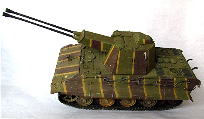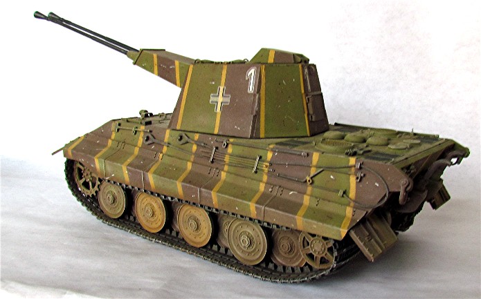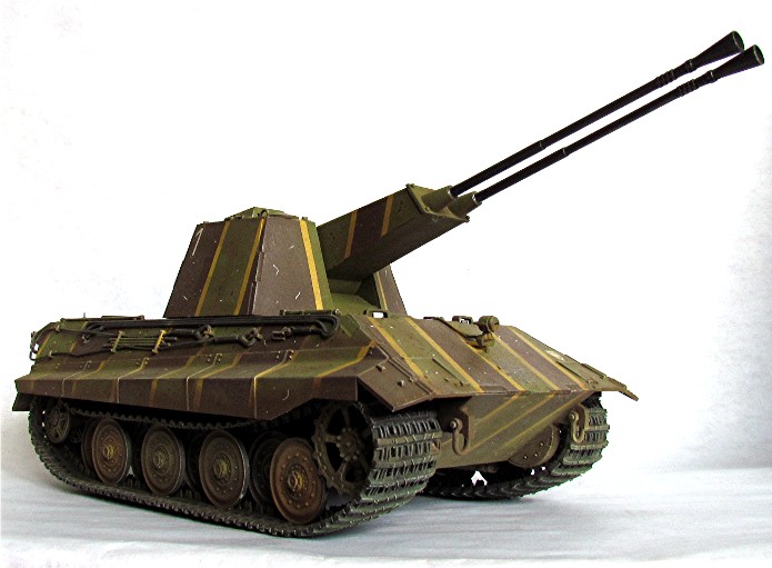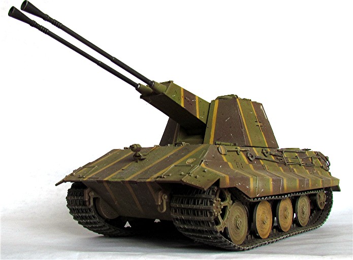 Vers la fin de Deuxième Guerre mondiale, l'aviation alliée domine les cieux en Europe. Pour tenter de contrer cette menace omniprésente, lors de leurs déplacements, les forces terrestres allemandes ont besoin de chars anti aériens. A cette période, le territoire du Reich agonisant est truffé de Flak légère et lourde. L’affût quadruple de 20 mm qui équipe entre autre les chars Mobelwagen , Wirbelwind et autres semi chenillés, montre ses limites face aux avions d’attaque au sol. Ces appareils sont de plus en plus lourdement blindés et résistent aux impacts des projectiles de 20 mm. La solution serait l’augmentation du calibre. L’Ostwind est équipé d’un canon anti-aérien 43 L/60 de 3,7 cm. Mais, ce n’est qu’une solution transitoire. Il faut un calibre encore plus performant. Le 5,5 cm est retenu. Le Flakpanzer nouvelle génération serait un Panther équipé d’une tourelle fermée rotative à 360° équipée de 2 tubes de 5,5 mm . Le concept ne dépassa pas le stade du projet et seulement un char composé d’une tourelle en bois montée sur un châssis de panther Ausf D vit le jour. Les firmes Krupp et Rheinmetall, retenues pour leur savoir-faire travaillèrent indépendamment sur le projet proposant chacune une tourelle différente. Beaucoup de problèmes n’étaient toujours pas résolus comme l’alimentation automatique des canons, ou l’évacuation des fumées hors de la tourelle.Durant ce temps, les ingénieurs allemands travaillent sur la nouvelle génération de blindés. Le projet « E » ou « Entwicklung » devait donner naissance à une nouvelle série de chars dont le poids irait de 5 à 100 tonnes selon le type de blindés. Le E-50 et le E-75, successeur respectif du Panther et du Tigre II, pourraient être déclinés en version antiaérienne en recevant cette nouvelle tourelle. Théoriquement, ces deux blindés avaient un équipage de 4 hommes. L’emport en munitions était de 104 coups.