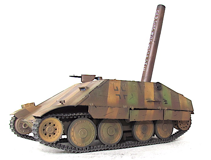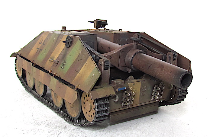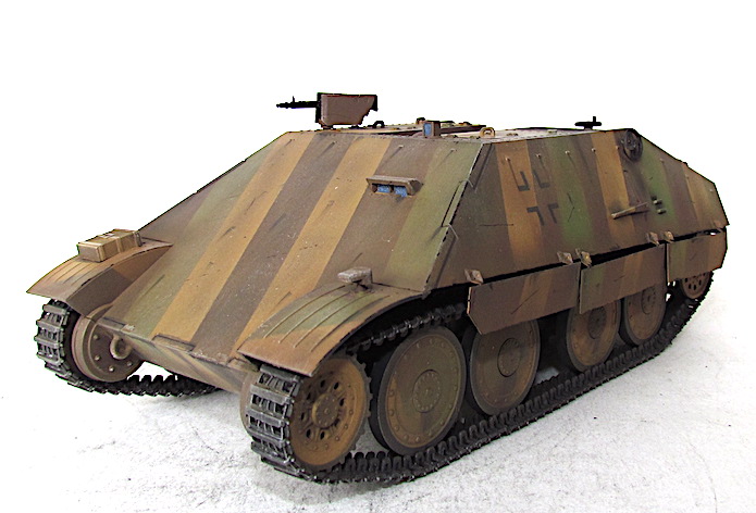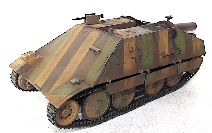 A la fin du conflit, les ingénieurs allemands cherchent à utiliser au maximum le potentiel du châssis tchèque 38 (t). Le châssis de l’ancien char 38 (t) subit une cure de jouvence au niveau du train de roulement et de la motorisation. Elargi et/ou allongé , il offre de nouvelles perspectives afin d’y installer un armement antichar ou antipersonnel de plus en plus lourd et de plus en plus performant.