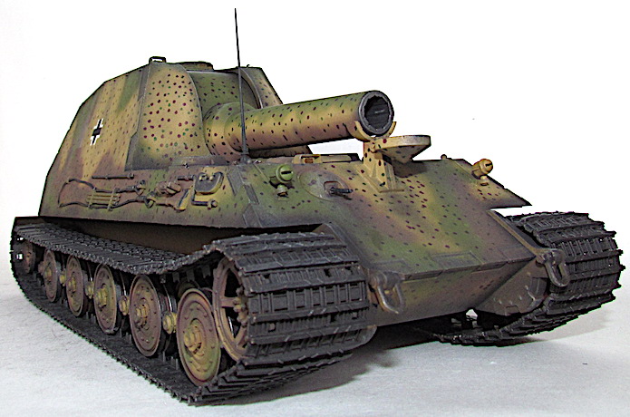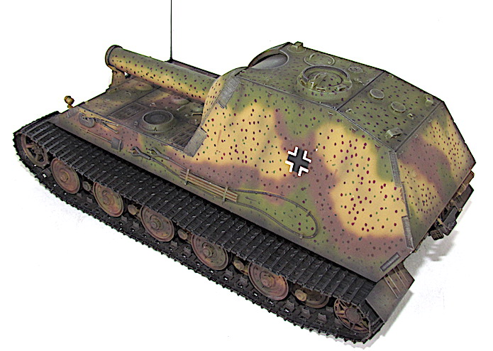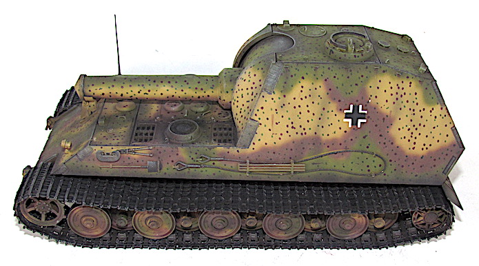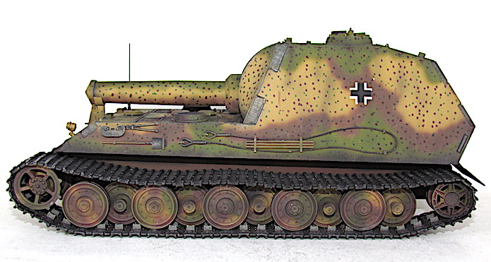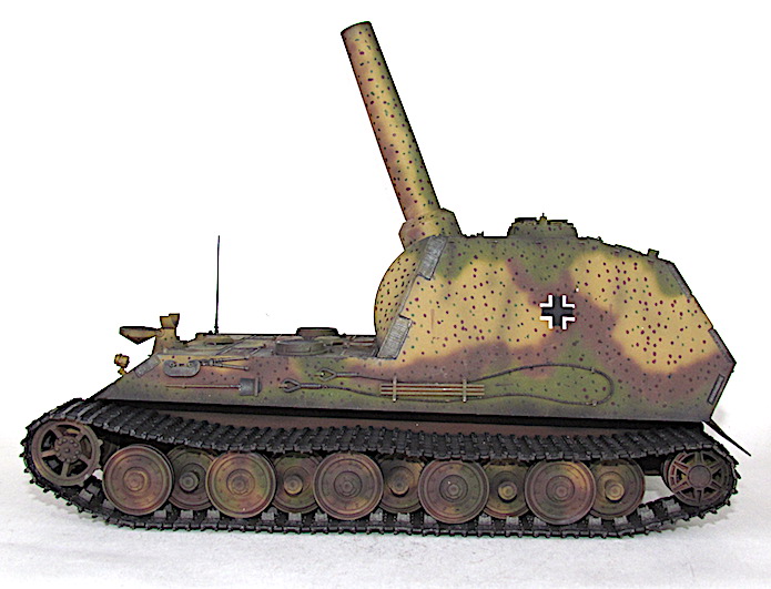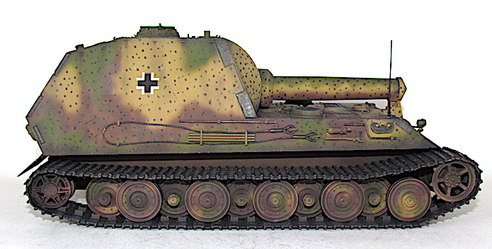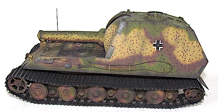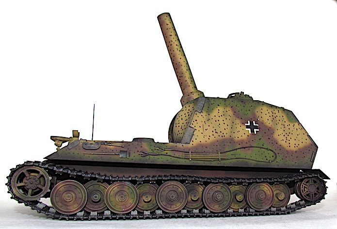 détournerait une partie des ressources nécessaire à leur assemblage. Finalement, le 10 mais 1943,ce dernier est écarté de la compétition au profit du 38cm RW61 auf Sturmmörser Tiger, un canon d’assaut lourd armé d’un lance-roquette de 38cm. Il est vrai que cette alternative proposée par Altmärkische Kettenwerk GmbH est plus économique tout en étant plus raisonnable avec ses 65 tonnes, car elle reprend des châssis recyclés de panzer VI Auf.E Tiger I.