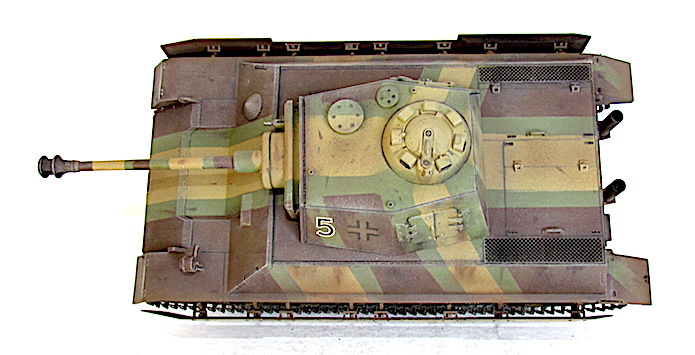 En pratique, la tourelle d’origine du Panzer IV Ausf. J est sélectionnée. L’abandon du système de rotation électrique est maintenu, mais la dotation en munitions est augmentée, avec 100 projectiles de 7,7cm et 3 150 balles de 7,92mm. Toutefois, la faiblesse de sa protection perdure, et il est tout à fait envisageable que cette tourelle soit remplacée par la Vereinfachter Turm fur Panzer IV (tourelle simplifiée pour Panzer IV) dessinée par la firme Krupp. Présentant six côtés, cette version se distingue par la suppression du tourelleau du commandant et encore des trappes de tir pour les armes de bord. En revanche, la protection s’accroît considérablement puisque la partie avant mesure désormais 80 mm inclinée à 10°, les flancs et l’arrière affichent 42 mm à 25°, contre 25 mm à 86° pour le toit.