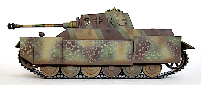 * Le modèle présenté ci-dessous est un montage "from the box" de chez Hobby Boss. Il diffère du texte de présentation par une largeur de chenille de 40 cm et de la présence d'un touelleau de chef de char tel que le trouve sur les Panther Ausf. A et G