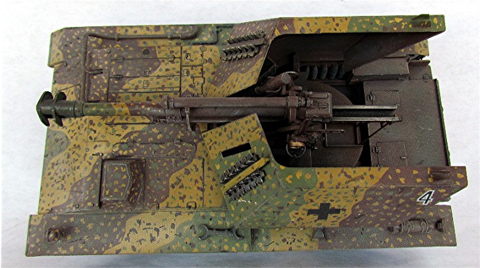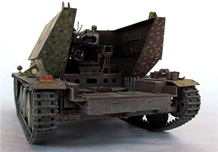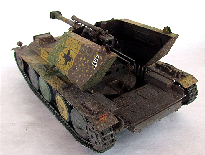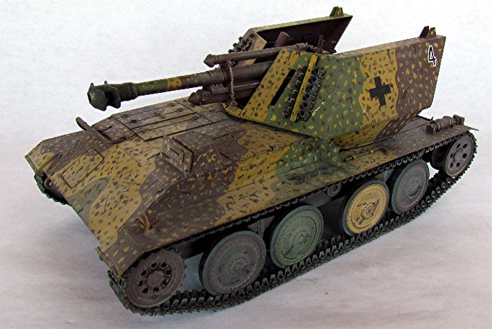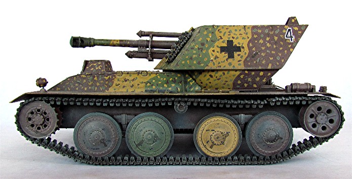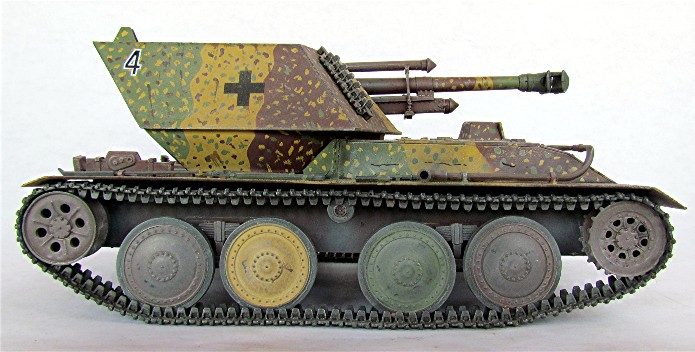 Le châssis initial devait être équipé d’un train de roulement à quatre roues. Si ce châssis était suffisant pour recevoir le Pak 88 mm 43, il fallut ajouter deux roues supplémentaires et rallonger la plateforme de tir pour l’adapter au Pak 12,8 cm 44. La construction des premiers châssis commença en mars 1945. Seule la version équipée d’un Pak 88 mm 43 vit le jour. Le rythme normal de production devait être atteint au quatrième trimestre de l’année.