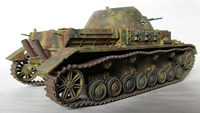 La maquette est présentée avec un camouflage de type embuscade
