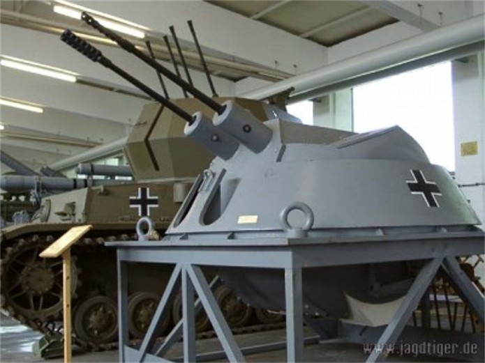 Le châssis du Pz IV fut retenu pour sa grande disponibilité ainsi que pour sa conception simple qui le rendait plus facilement modifiable en vue de l’emport du nouveau système d’armes. Les modifications les plus importantes étaient la mise en place d’une circulaire de tourelle de Tiger I, le repositionnement des trappes d’accès supérieures, une nouvelle plaque de blindage frontale plus haute et le nouveau dessin de la mitrailleuse de caisse. La nouvelle tourelle avait une forme révolutionnaire pour l’époque. Sphérique et entièrement fermée, elle contenait les 3 servants et les 2 casiers à munitions à alimentation par bandes. Il est à rappeler qu’à l’époque l’Ostwind, le Wirbelwind et le Mobelwagen possédaient tous trois des armes à alimentation par lames/chargeurs. Un système de transmissions interne sur la base d’un boîtier central (Ksp.Pz.Nr.20) reliait l’ensemble des personnels du véhicule qui étaient équipés d’un boîtier individuel (Ksp.Pz.Nr.21). Les communications extérieures se faisaient par Fu5. Cependant, l’emploi de ce système d’armes soulève des énigmes. Les questions posées par la détermination des cibles volantes à grande vitesse par le chef de tir à l’aide d’un épiscope, les fortes vibrations engendrées par le puissant recul des 2 canons, la non–herméticité de la tourelle aux intempéries restent sans réponse.