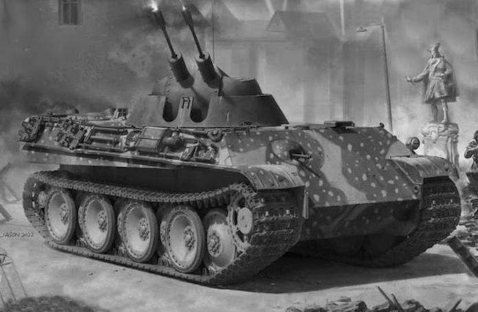 Le « Kugelblitz » est un système d’arme révolutionnaire. Mais Rheinmetal envisage début 1945 de remplacer le 3cm par le 3,7 cm Flak-Zwilling 44 pour contrer la protection grandissante des chasseurs bombardiers ennemis.