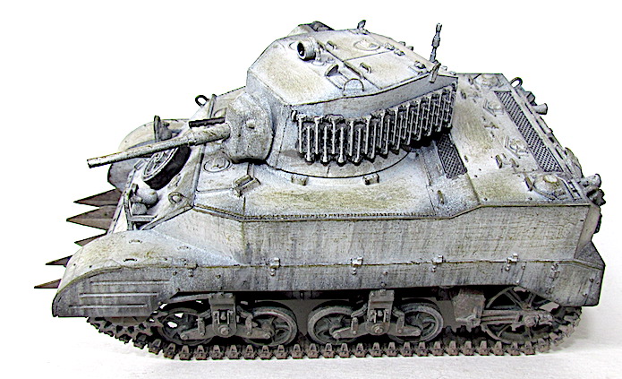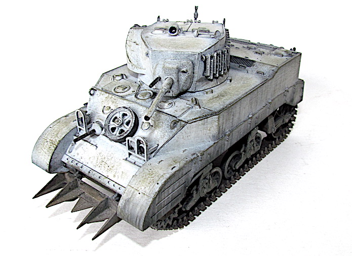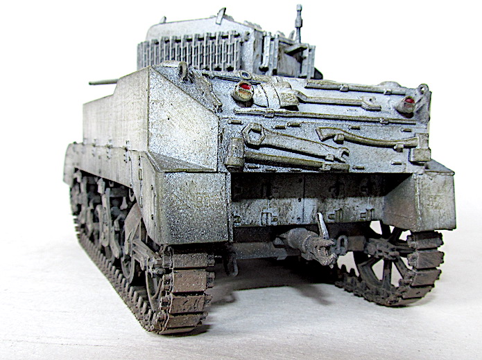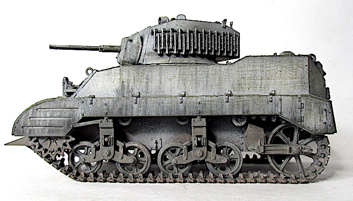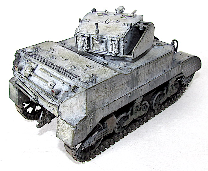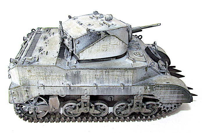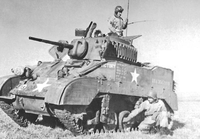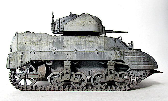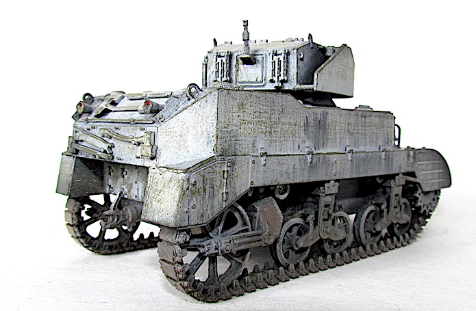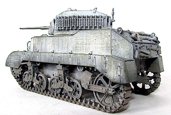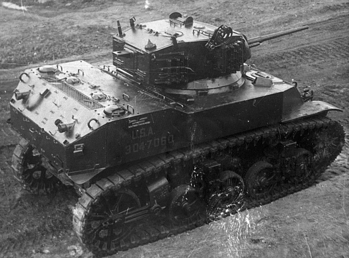 Les États-Unis ambitionnant de devenir l’arsenal des démocraties et de fournir des matériels à tous leurs Alliés, l’industrie américaine se lance dans des programmes massifs d’armement. Mais, en dépit de son potentiel, elle bute sur des problèmes de fourniture de moteurs. En effet, la mécanique en étoile de la série des M3 n’est pas disponible en quantité suffisante compte tenu des besoins en Light Tanks. La firme Cadillac propose d’installer deux V8 essence montés en parallèle, bloc déjà utilisés sur une voiture civile. Cette installation nécessite de redessiner le compartiment arrière, qui est surélevé par rapport à celui du M3. Cette solution technique demande toutefois de très bien régler les mécaniques afin qu’elles fonctionnent parfaitement de concert. Par ailleurs, les temps d’immobilisation pour les révisions sont doublés, car il est impératif de contrôler les deux V8 au même moment. La logistique est également plus lourde, car les pièces détachées doivent être disponibles en double. Pour sa part, en vue de faciliter le pilotage, le prototype ME teste une transmission automatique Hydramatic, issue du monde de l’automobile. Moins volumineuse, elle permet d’installer un panier de tourelle plus vaste. La dotation en munitions profite de ce gain, puisque 13 obus de 7 mm sont désormais disponibles. Par ailleurs , une trappe de secours est découpée dans le plancher. Si le déplacement des écoutilles du pilote et du radio sur le toit de la caisse a permis de renforcer la résistance structurelle de l’avant du blindé, il a eu comme inconvénient d’augmenter le risque de blocage des trappes si le canon de 37 mm venait à être immobilisé juste au-dessus. Toutes ces modifications sont validées en février 1942 et 2 074 Light Tank M5 (Stuart VI pour les Anglais). En septembre 1942, lorsque le M3A3 est sur le point d’entrer en production, les Américains décident de monter une tourelle améliorée, équipée d’une mitrailleuse antiaérienne M1919A4 de 7,62 mm, sur le châssis d’un M5, donnant naissance au M5A1( toujours désigné Stuart VI par les Anglais). Début 1943, cette nouvelle version remplace le M5 sur les chaînes d’assemblage.