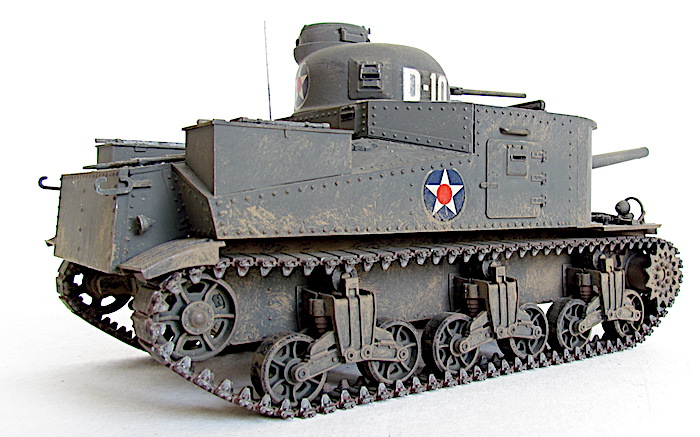 A l’orée du second conflit mondial, l’armée américaine n’est pas préparée à affronter la moindre guerre d’envergure, car elle ne dispose que de 15 Medium Tank M2 armés d’un canon de 37 mm et de 6 mitrailleuses. Le général Chaffee , à la tête de l’Armored Force créées la 10 juillet 1940, préconise l’installation d’un pièce M3 DE è( MM. Hélas, la tourelle du M2 est trop étroite et l’arme est montée en encorbellement, position aussi appelée « barbette » avec un débattement de 30°. Cet emplacement latéral, sur la droite de la caisse ne demande pas un travail de conception compliqué. L’équipage se compose d’un chef de char, d’un pilote, de 2 chargeurs et de 2 tireurs. Un opérateur radio est parfois installé. La production de la première version du Medium Tank M3 débute en avril 1941. Il partage son châssis avec le M2A1, notamment le train de roulement et le moteur 9 cylindres radial Wright Continental R975 de 340 cv. La tourelle , qui abrite une pièce de 37 mm, et la casemate sont moulées, tandis que le reste de la caisse est assemblée par rivetage. Outre un puissant obus explosif, le canon M3 tire un projectile perçant 45 mm de blindage à 1 000m sous une incidence de 30°.