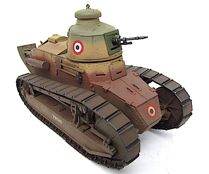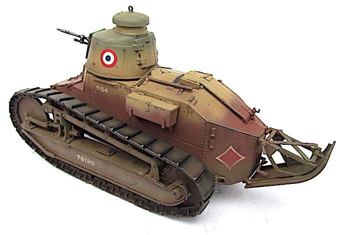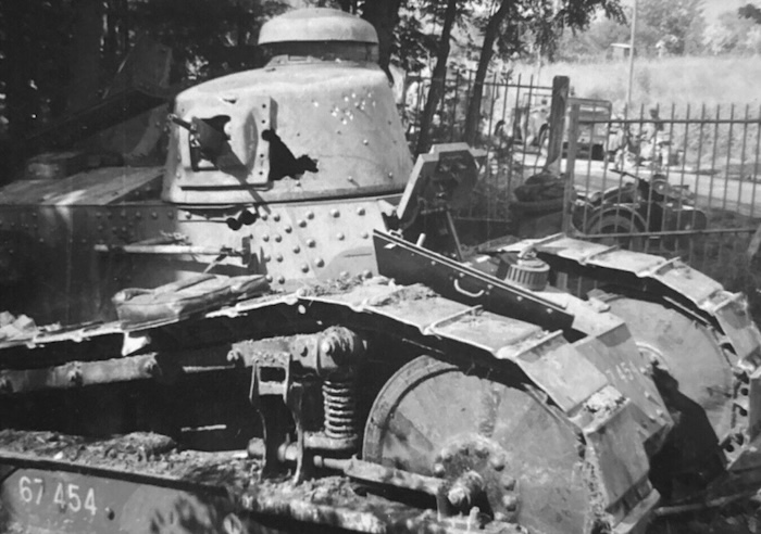 En 1940, face à la poussée allemande, de nombreux FT sont réactivés, parfois désarmés, équipés à la hâte d’un fusil-mitrailleur 24/29 derrière un simple blindage percé. Ces chars épuisés sont déployés en soutien ou intégrés à des bouchons antichars. Faiblement blindés, lents et sous-armés, ils ne font pas le poids face aux Panzer modernes.
