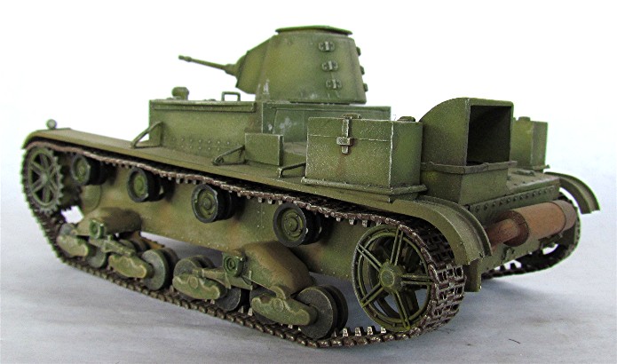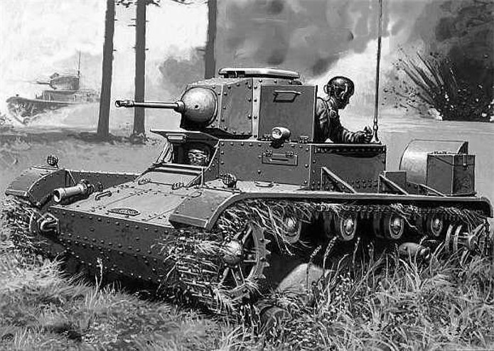 Les projets de la modernisation de l’arme blindée comprenaient non seulement la production et l’achat de nouveaux chars, mais aussi des essais de modernisation des véhicules déjà en dotation. D’après le commandement, les chars Vickers E étaient trop faiblement blindés et leur armement symbolique. L’équipement de TKS avec l’adoption du canon FK de 20 mm a considérablement augmenté la valeur de ces véhicules déjà âgés, et leur a permis de pouvoir combattre à arme égale leurs ennemis potentiels. Ce que la campagne de septembre 1939 a démontré, le Panzer II était aussi équipé d’un canon de 20 mm. L’espace trop exigu des TKS n’a pas permis d’y installer des postes radio de grande puissance pour créer des véhicules de commandement du groupement blindé. Et c’est ici qu’entre en scène les vieux Vickers E. On a décidé de démonter la plaque de blindage supérieure, d’ôter les tourelles existantes et d’installer la tourelle du PZlnz . 130 avec le canon de 20 mm. A la place de la deuxième tourelle, on a prévu de monter un poste radio avec son équipement. Ainsi à partir du châssis d’un char obsolète, on crée un véhicule de commandement de valeur. Malheureusement, l’invasion allemande en septembre 1939 ne permit pas le développement du projet.