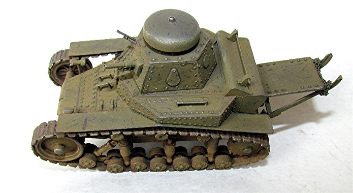 Le premier véhicule qui répondait à ces nouvelles normes fut achevé avec succès en mai 1927 : c’était le char T-16 de 5 tonnes. Après des essais intensifs, on apporta des changements au moteur et le char fut allongé afin de réduire le fort tonnage dont il souffrait. Ces travaux furent terminés en novembre 1927 et le modèle définitif qui en résultat fut appelé T-18 . Sans attendre l’achèvement des transformations et des essais, le Conseil militaire révolutionnaire avait dès le 6 juillet, adopté le T-18 comme modèle standard. Il fut officiellement dénommé « Petit Soutien –Un » (MS-1). La production du char, entamé en 1928, fut confiée à l’usine Bolchevik de Leningrad qui, en mai 1929, avait terminé le premier lot de 30 unités en utilisant les ressources de l’Ossoaviakhim, l’organisation d’entrainement paramilitaire. Le MS-1 fut le premier char soviétique construit en série et quelques 960 exemplaires furent produits de 1928 à 1931. En 1932, ce char fut déclassé et relégué à l’ Ossoaviakhim. Il était armé à la fois d’un canon (avec 109 obus) et d’une mitrailleuse (avec 2 016 cartouches) et équipé d’un moteur spécial refroidi par air. L’utilisation de bogies dotés de bandage de caoutchouc était une innovation. Soucieux de rendre le véhicule plus compact et moins lourd, ses concepteurs avaient placé le moteur , qui faisait corps avec la transmission, transversalement à l’arrière de la coque. Cette nouvelle disposition permit de limiter le poids du char à 5,4 tonnes. Divers modèles perfectionnés apparurent, dont le dernier possédait une tourelle modifiée en porte-à-faux.
