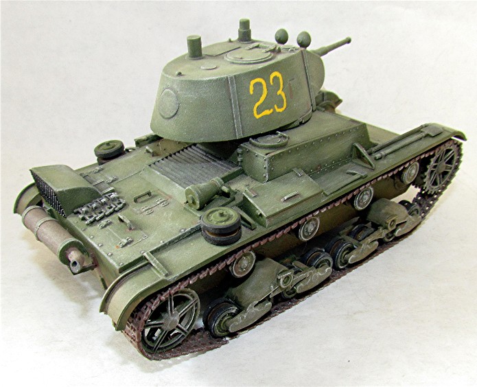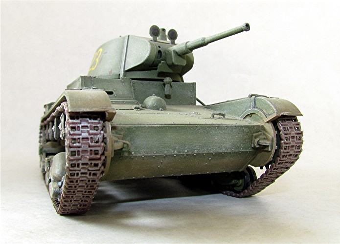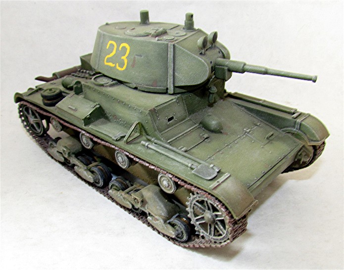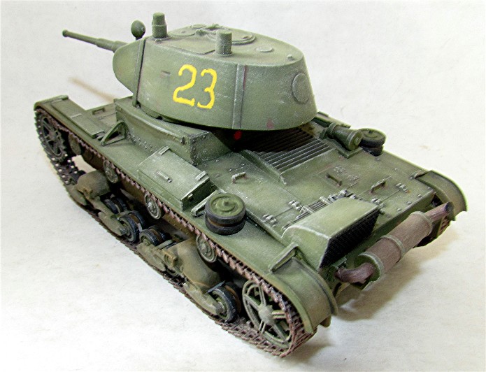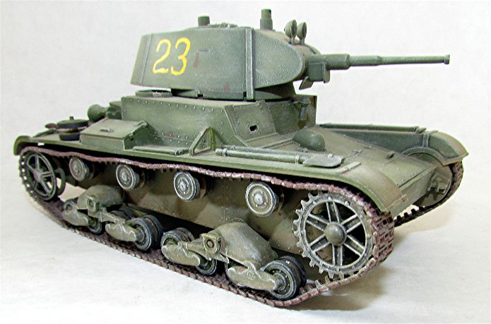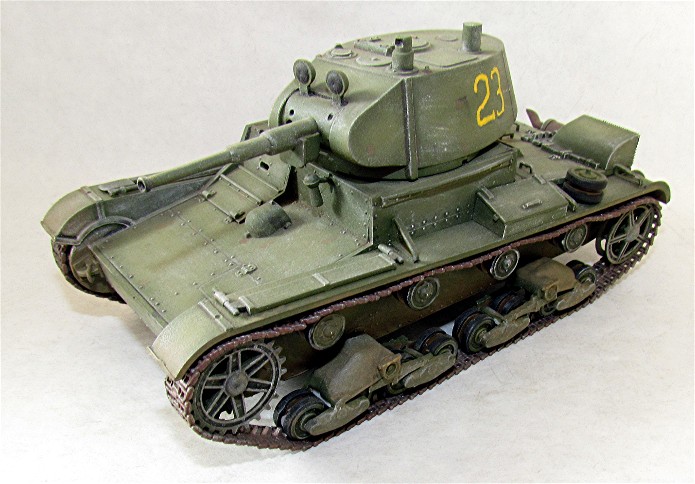 Le T-26 Modèle 37 est équipé d’une tourelle en fer laminé avec des renforts soudés sur la partie principale. A la différence du T-26 Modèle 33, ce char est équipé d’une trappe d’évacuation d’urgence dans le plancher du véhicule et de réservoirs plus grands. En fonction de l’unité dans laquelle ils servaient, ces chars étaient équipés de phares au-dessus du canon, pour éclairer les cibles la nuit, et de mitrailleuses supplémentaires antiaériennes. La mitrailleuse montée à l’arrière de la tourelle a été abandonnée car son utilisation était peu aisée. Quelques chars ont été transformés en véhicules de commandement par l’ajout d’une antenne entourant la tourelle. Le char T-26 a été employé durant la guerre civile d’Espagne ainsi que durant la guerre avec la Finlande. Le plan 3Barbarossa » et la progression rapide des troupes allemandes à l’intérieur de la Russie a fait que des grandes quantités du matériel blindé n’ont pas eu le temps de prendre part aux combats (y compris les T-26) et ont été pris par la Wehrmacht en parfait état de marche. Ces véhicules ont été utilisés contre les unités de l’Armée rouge encerclées et dans les unités de police luttant contre les partisans.