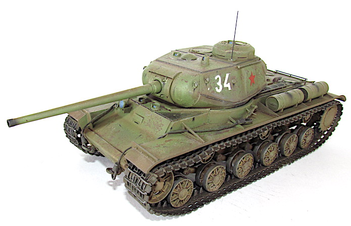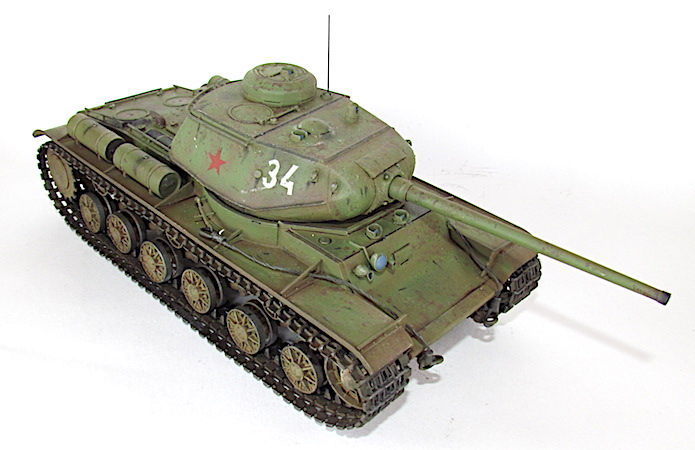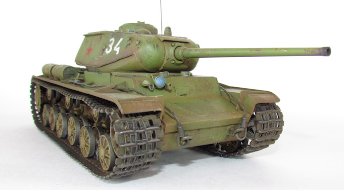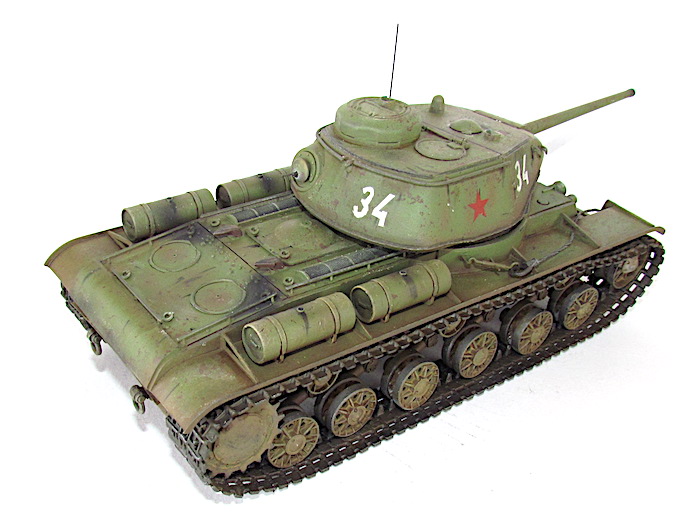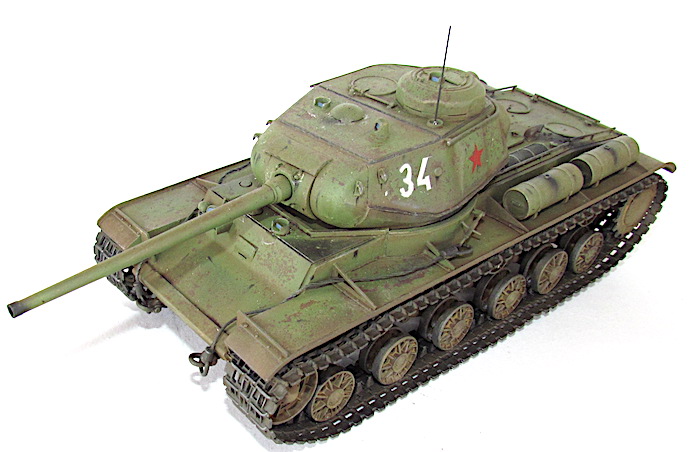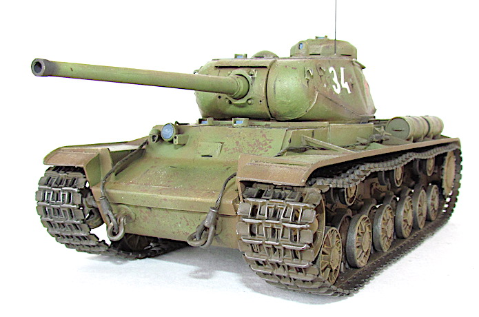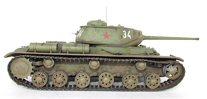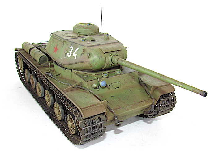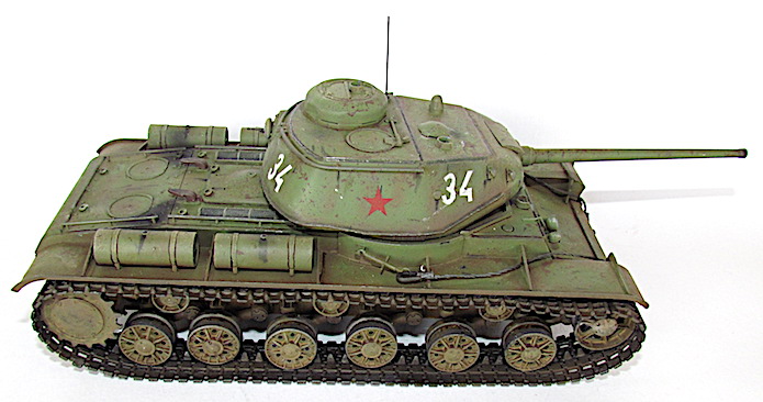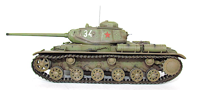 Aves la mise en service du PanzerVI Ausf .E Tiger, le KV-1S ne répond plus aux exigences du champ de bataille, et les Soviétiques tentent de la remettre à niveau en greffant un tube de 85 mm modèle S-31. Rappelons que, début 1940, une version agrandie du KV-1 dotée d’un canon de 85 mm était à l’étude, mais l’intervention calamiteuse du maréchal Kulik, détracteur de l’Arme blindée et de ses nouveaux matériels, mais pourtant très influent car écouté par Staline, entraine des retards qui sont fatals à la mise en route de la production. Sa volonté impérieuse d’installer un 107 mm en lieu et place du 85 mm fait que la char n’est pas prêt à la déclaration de guerre et son achèvement jamais atteint.