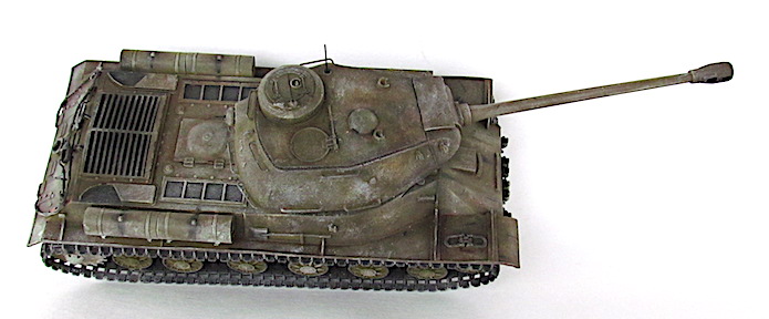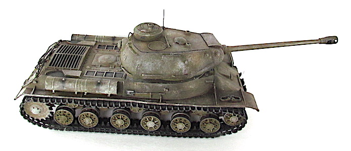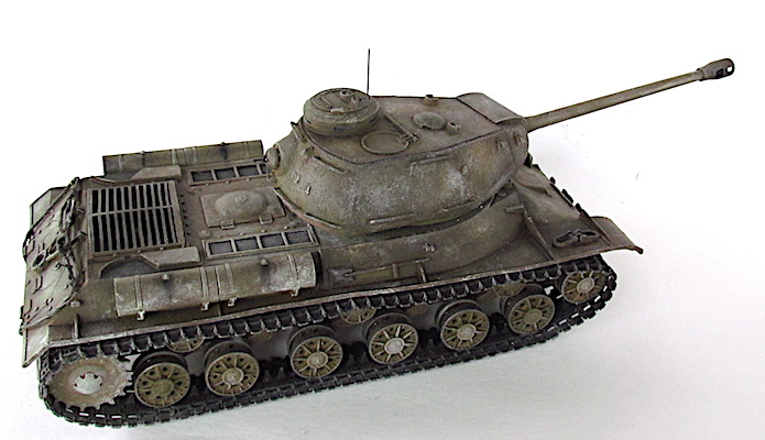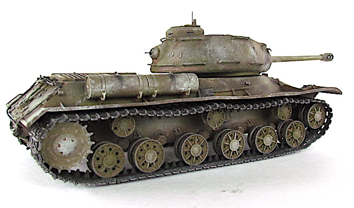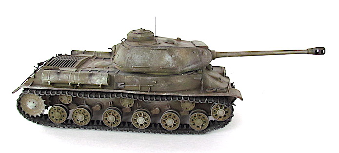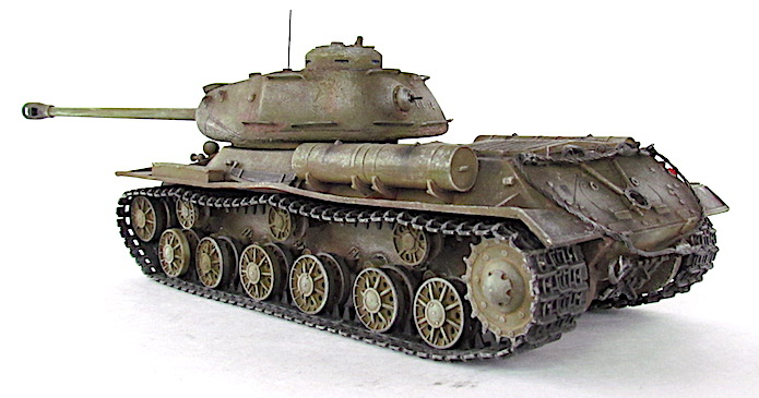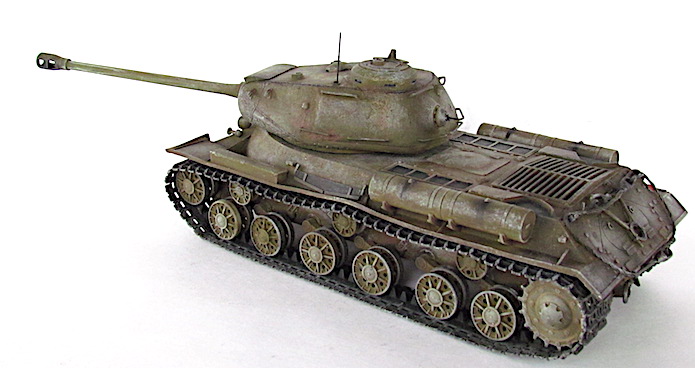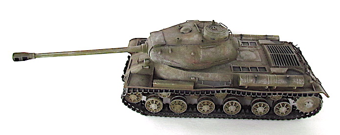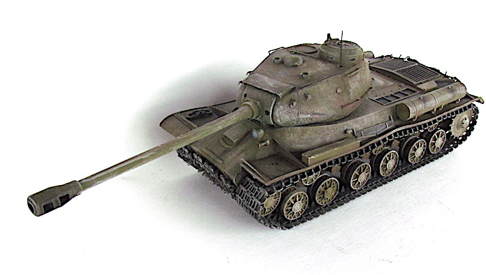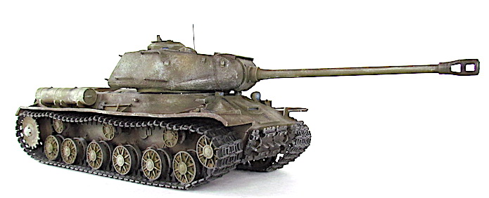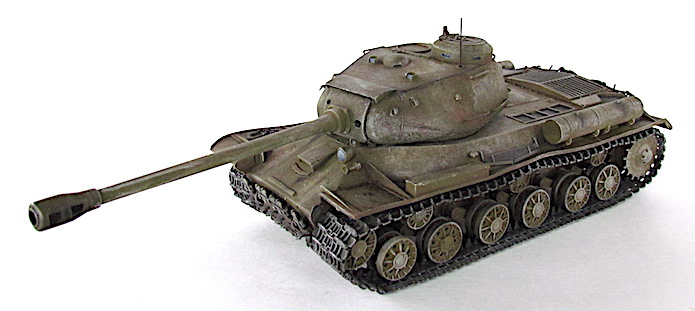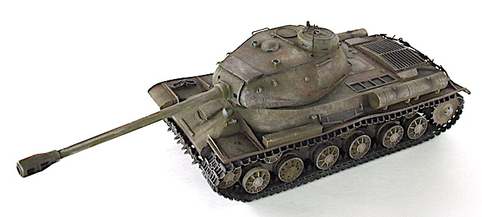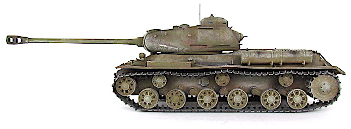 Après la bataille de Kursk, les Soviétiques accélèrent les travaux dirigés par le général Kotin pour developper un nouveau char de combat lourd. Ils prennent en compte l’expérience passée des pachydermies KV et conçoivent un nouveau modèle en partan de sa coquet de ses éléments mécaniques. La suspension est améliorée et le moteur renforcé. Au début de l’automne 1943, les trois premiers prototypes sont prêts et, après leur évaluation au sein de l’entreprise par une commission spéciale du comité d’ Etat de la Défense (GKO), le projet est accepté. La fabrication en série commence alors en octobre 1943.