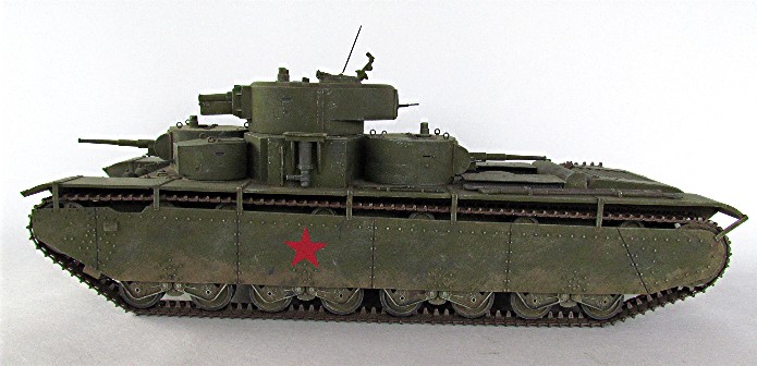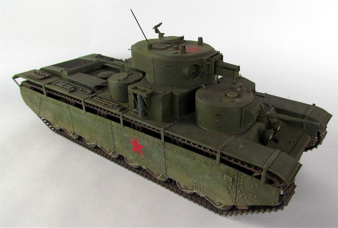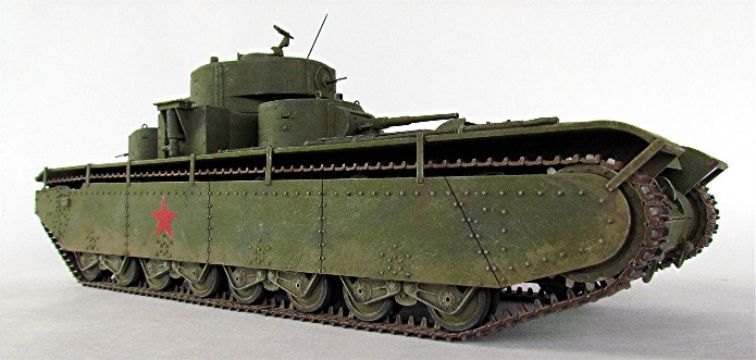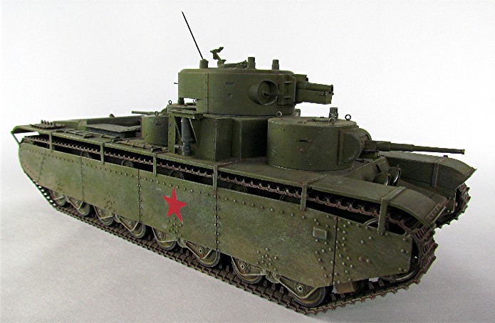 Le T 35 fut l’une des plus grandes déceptions rencontrées par les concepteurs de chars soviétiques avant la Seconde guerre mondiale. Aboutissement d’étude entreprise en 1930, le prototype sortit de l’usine en 1932. En ce qui concerne sa configuration, ainsi qu’en bien d’autres points, le T 35, inspiré du T 28, fut fortement influencé par le British Vickers Independant A1E1, char produit au compte-goutte et qui figura au dossier de l’un des plus fameux procès d’espionnage de l’époque. Le T 28 emprunta au Vickers, un élément d’importance, la multiplicité des tourelles.