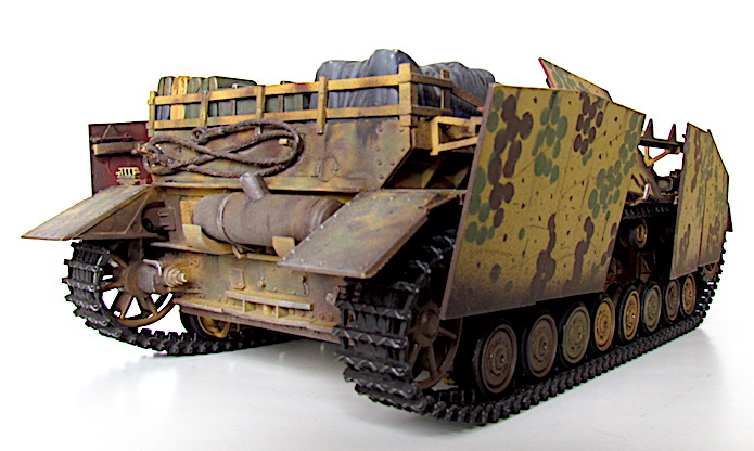 Bien entendu, les nouveaux engins profitaient de toutes les améliorations apportées à ceux dont ils étaient dérivés, ainsi le Stürmgeschutz IV reçut-il rapidement une protection de 80 mm, de lance-genades pour la défense rapprochée, et une mitrailleuse MG.34 télécommandé. Les photos font en outre apparaître sur la plupart d’entre-eux un renfort en ciment armé d’une quinzaine de centimètres d’épaisseur devant le poste de pilotage.