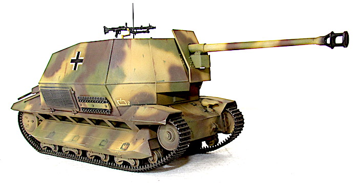 Trop étroite pour accueillir une pièce de fort calibre, la tourelle est déposée pour faire place à une superstructure ouverte sur le dessus. Faiblement blindée, à hauteur de 10 à 15 mm, elle n’offre qu’une protection limitée et ne met à l’abri son équipage de quatre hommes que des projectiles de petit calibre. La caisse d’origine mesure pour sa part 40 mm, ce qui est largement insuffisant en 1943. Un canon antichar de 7,5cm Pak 40 est ensuite sélectionné, car cette arme est capable de détruire la grande majorité des chars alliés grâce à un obus perforant susceptible de percer 108 mm d’acier à 100 mètres sous une incidence de 30°. Il est ensuite monté selon une technique désormais tout à fait classique pour les ingénieurs allemand travaillant à Versailles et qui bénéficient de toute l’expérience acquise par la firme Altmärkische Kettenwerrk GmbH (Alkett), coutumière de ce type de bricolage. Toutefois, cette improvisation souffre d’une silhouette trop haute et d’une surcharge de son châssis. L’engin est servi par un commandant, un tireur, un chargeur et un pilote, assez à l’étroit dans un habitacle bien encombré par la culasse du canon.