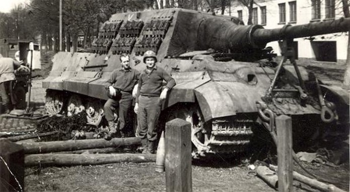 Ce Jagdtiger fut le véhicule blindé le plus lourd et le plus puissant de la Seconde Guerre mondiale. Son poids officiel ne descendait pas en dessous de 70 tonnes, mais avec la dotation en munitions et le matériel de combat supplémentaire ainsi que l’équipage de six hommes, son poids atteignait 76 tonnes. Le blindage qui avait une épaisseur d’au moins 250 mm sur la plaque de blindage avant de la superstructure en était, en majeure partie, responsable. L’armement principal d’origine se composait d’un canon antichar Pak 44 de 128mm qui fut, plus tard, changé au profit du Pak 80 semblable et, à une certaine époque, où les bombardements alliés créèrent une pénurie de ces canons, du Pak 43/3 de 88 mm beaucoup plus petit. Le canon de 128mm fut l’arme antichar la plus puissante de la Seconde Guerre mondiale jamais utilisée. La taille de ses obus était telle qu’il n’était pas possible à un Jagdtiger d’en recevoir plus de trente-huit ou quarante. L’armement défensif comptait deux mitrailleuses de 7,92mm.