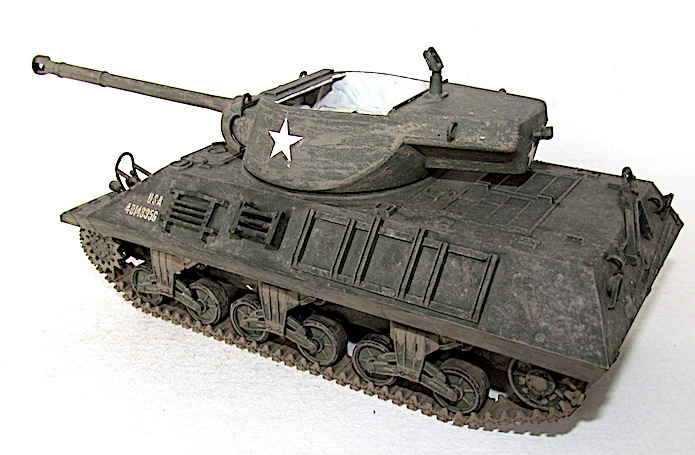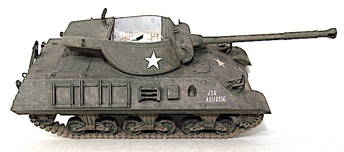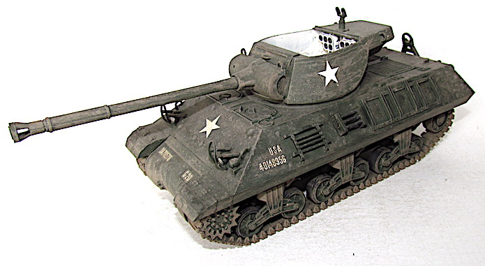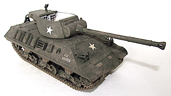 En 1942, constatant l’accroissement de la cuirasse des Panzer, les Américains installent leur canon antiaérien M1 de 90 mm dans une tourelle. LA pièce est alors modifiée avec l’adaptation d’un bloc-culasse manuel plus facile à manipuler, un nouveau système de tourillons et un recul atténué. L’Ordnance Committee ordonne en octobre 1942 de monter ce 90 mm Gun T7 sur un M10. Si ce dernier s’avère performant avec son obus T30E 16 HVAP-T (Hight Velocity Armor Piercing-Tracer) capable de percer 150 mm à 2 000 mètres, il n’en va pas de même de la tourelle. Dans ces conditions, un nouveau modèle, toujours ouvert sur le dessus, est dessiné puis fixé sur le châssis d’un M10A1. En septembre 1943, le prototype est testé, puis approuvé le 9 décembre, avant d’être produit en série dès avril 1944 sous la désignation de 90 MM Gun Motor Carriage M 36 . Les 40 premiers M36 arrivent en Europe début septembre 1944.Par la suite, afin de disposer d’un plus grand nombre de TD à tube de 90 mm, la firme Fisher assemble, entre octobre et décembre 1944, la tourelle du M36 directement sur la caisse du Medium Tank M4A3 . Les 187 chasseurs de chars fabriqués sont référencés M36B1. Une fois épuisés les stocks de M10A1, l’US Army recycle les surplus de M10 à motorisation diesel en leur greffant une tourelle du M36. Dénommée M36B2, cette version est fabriquée à 724 exemplaires en 1945