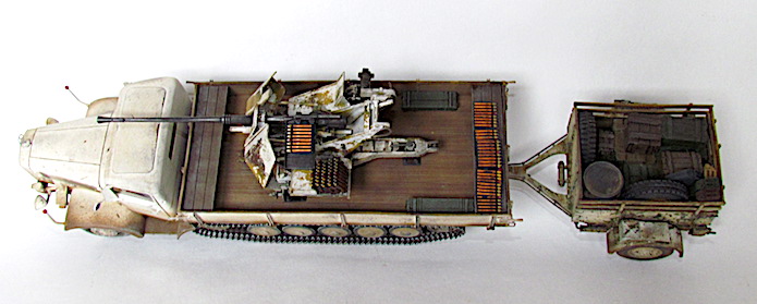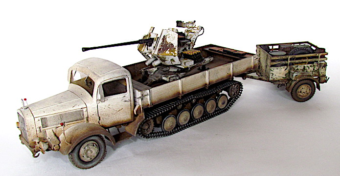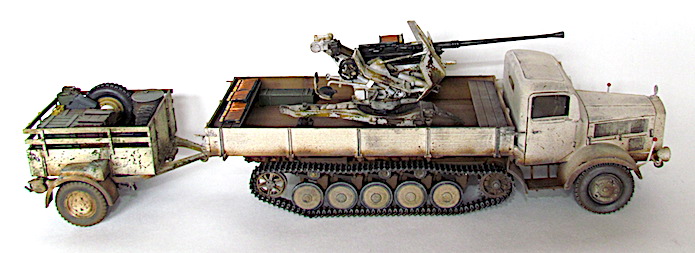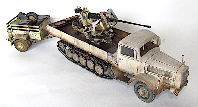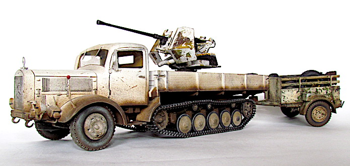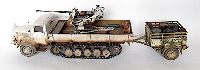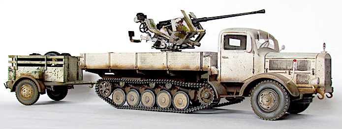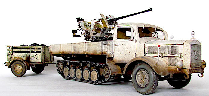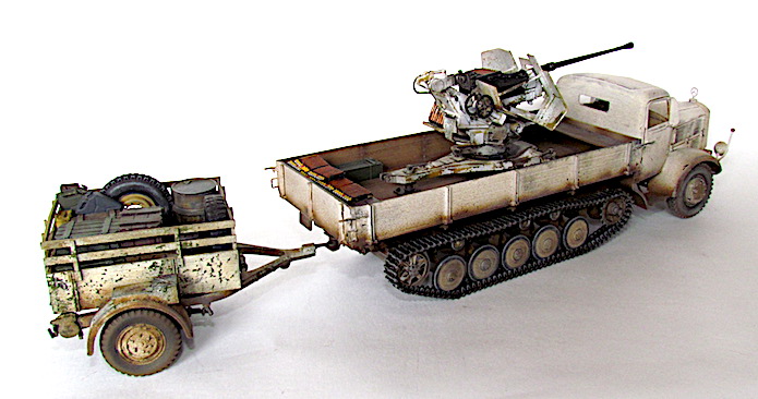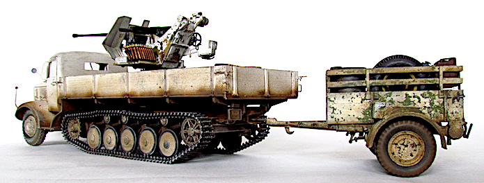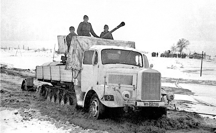 A titre d’exemple, le Schewere Skijäger-Battaillon aligne neuf canons de 3,7cm Flak37 et autant de de Maultier Mercedes en guise de tracteurs. La plupart des canons Flak montés sur camion et semi-chenillés sont fournis avec leur remorque. Ils peuvent ainsi être demontés et libèrer le véhicule pour une autre tâche. Dans la pratique, dans un souci de mobilité, les pièces resteront à demeure sur le véhicule.