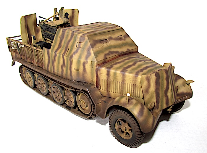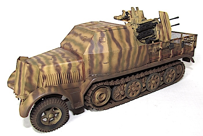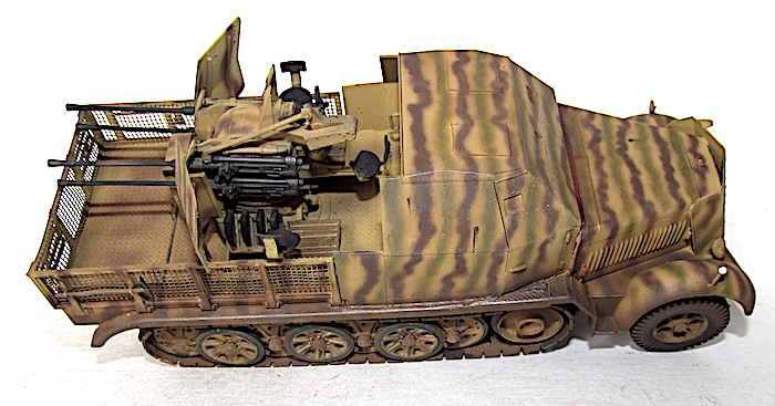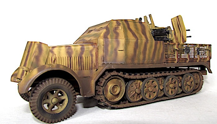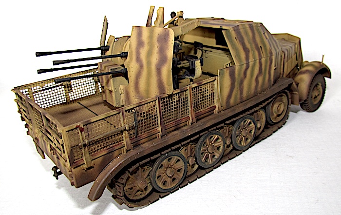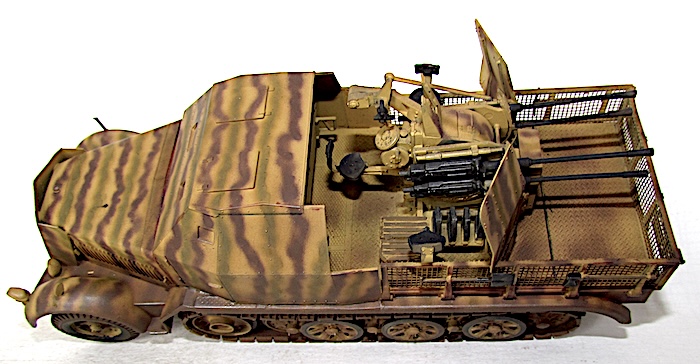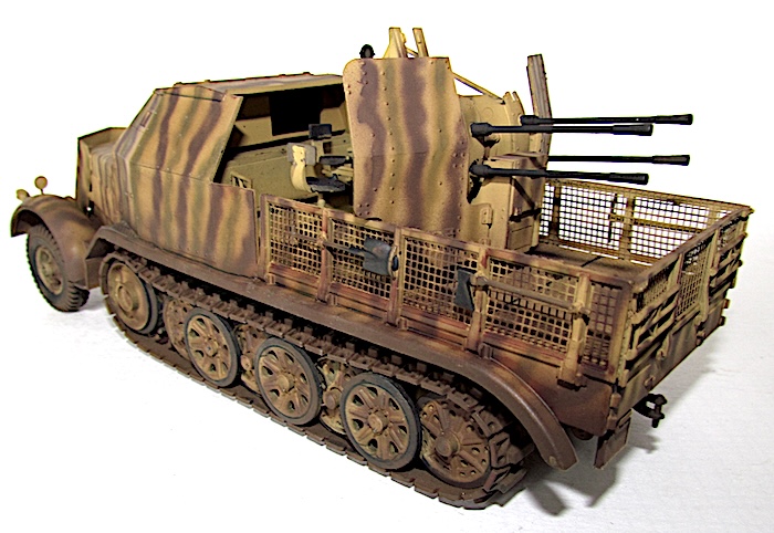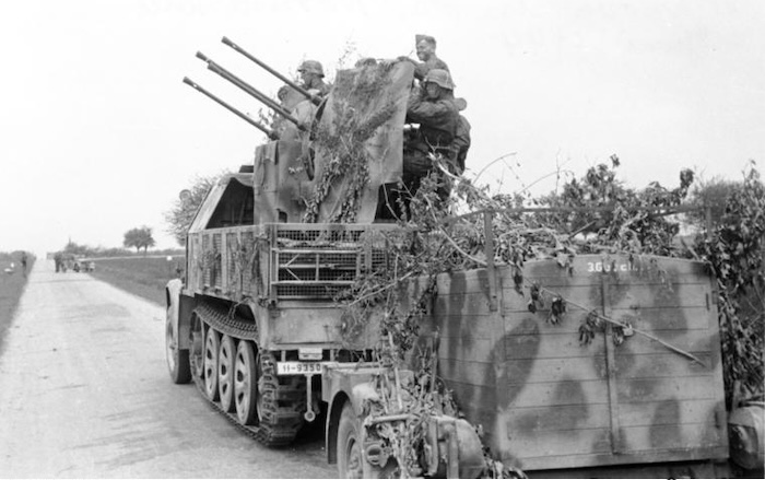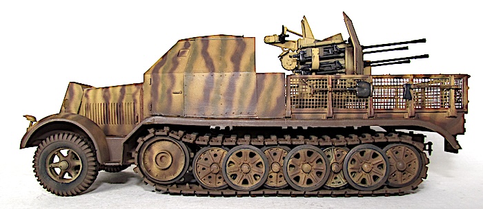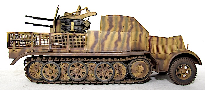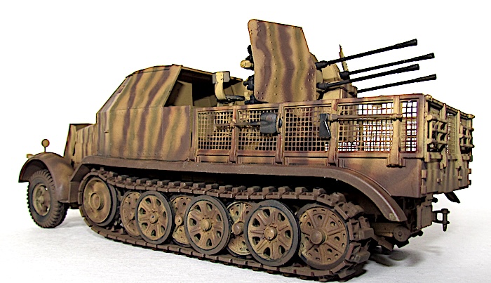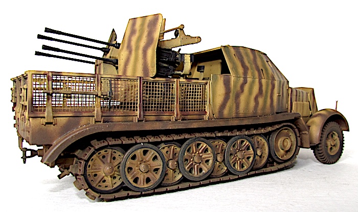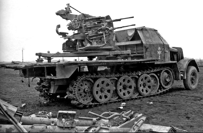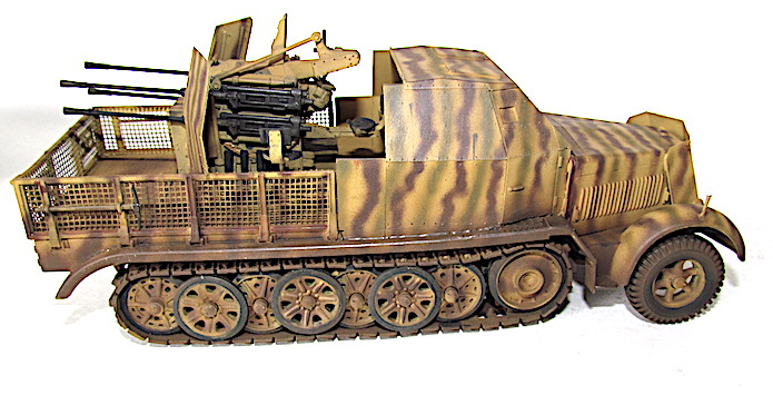 La protection des convois contre l’aviation ennemie a, dès le début de la guerre, posé des problèmes à l’armée allemande. La Blitzkrieg étant fondée sur la mobilité et la rapidité, les canons de Flak statiques ne pouvaient pas être déplacés et installés assez vite pour couvrir les pointes blindées avancées. Les quelques improvisations de 1939-1940 n’apportèrent pas satisfaction. Le canon de 2 cm FlaK 30, monté sur le semi-chenillé SdKfz 10 était certes mobile, mais trop peu puissant et trop lourd pour ce châssis. Bien qu’un peu présent, l’aviation soviétique menaça cependant la progression de l’opération Barbarossa et il fut donc décidé de produire un nouveau véhicule plus fiable, capable de porter une arme plus efficace. Le SdKfz 7 de 8 tonnes, qui servait jusqu’alors principalement de tracteur d’artillerie, fut alors retenu car l’arrière de ce véhicule pouvait être facilement aménagé en plate-forme de tir. On conserva donc le poste de conduite à trois places et un plateau métallique entouré de volets grillagés abattables remplaça les sièges arrière.