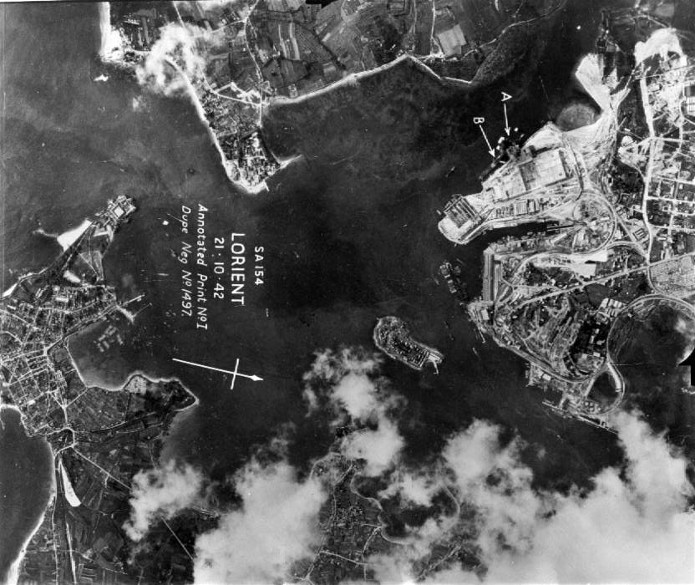 Document : Vue aérienne du port de Lorient effectué lors d’un vol de reconnaissance le 21 octobre 1942.