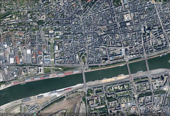 Photographie aérienne du bras de Seine et de la ville de Rouen quelques semaines avant le Débarquement.
